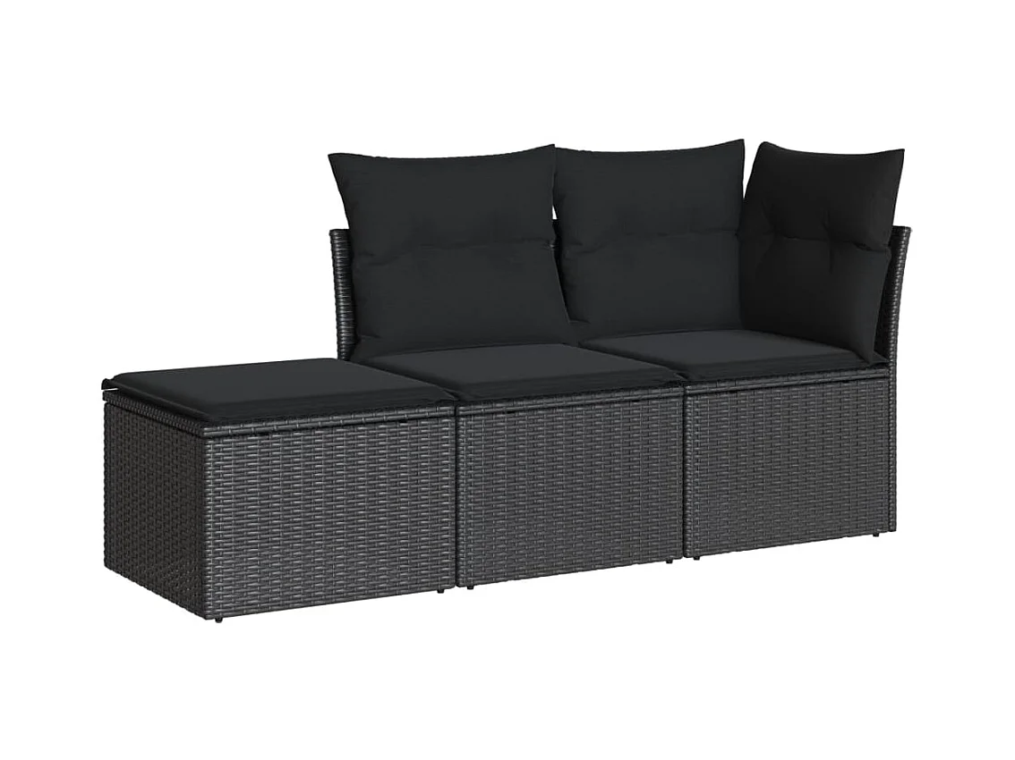 Salon de jardin 3 pcs avec coussins noir résine tressée