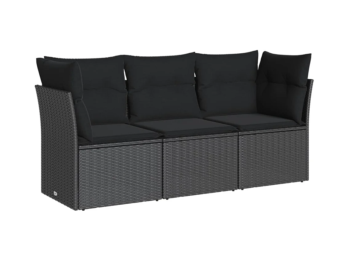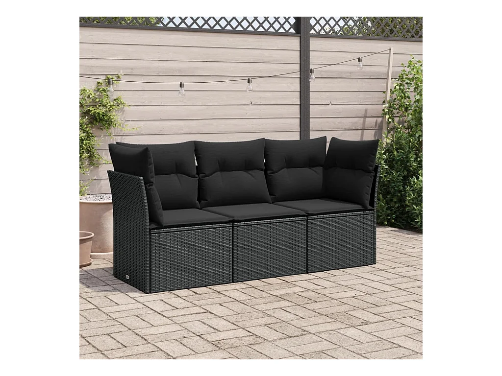 Salon de jardin 3 pcs avec coussins noir résine tressée BE45618