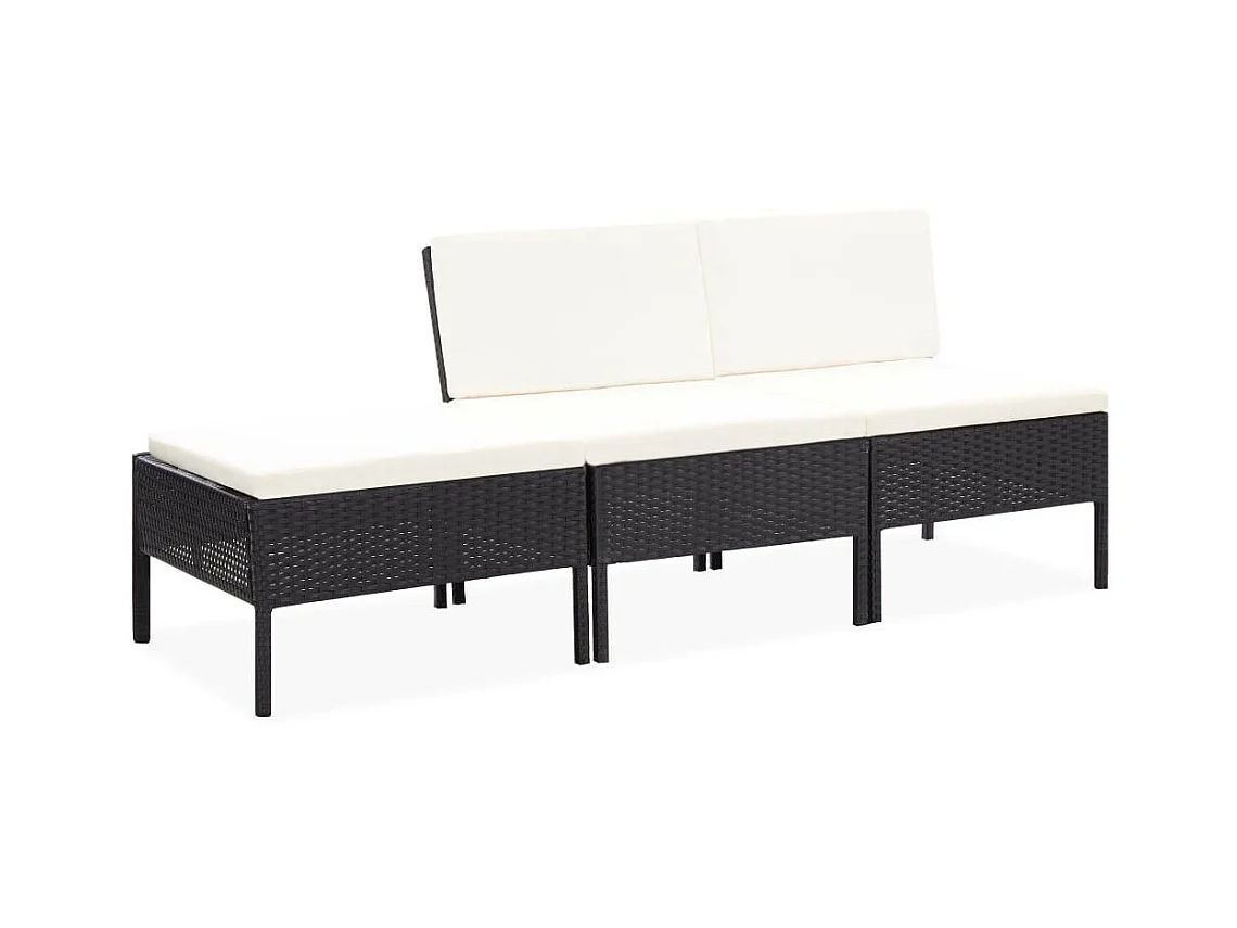 Salon de jardin 3 pcs avec coussins Résine tressée Noir 7