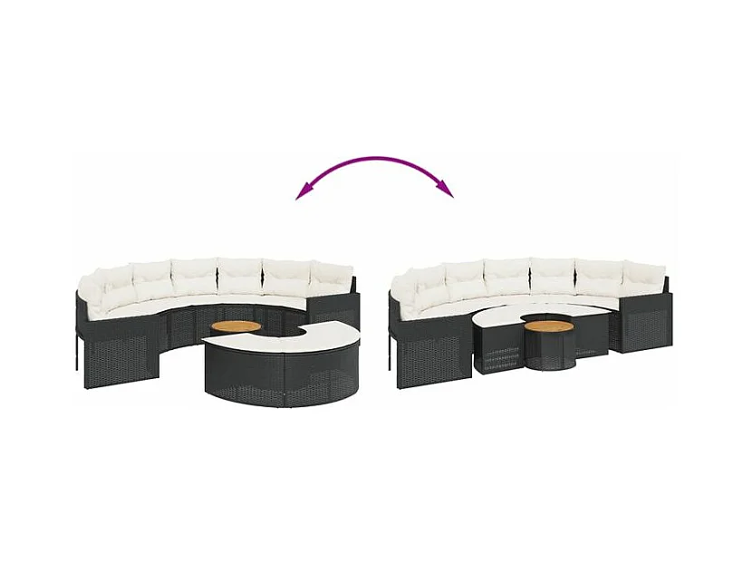 Salon de jardin 3 pcs demi-rond noir résine tressée