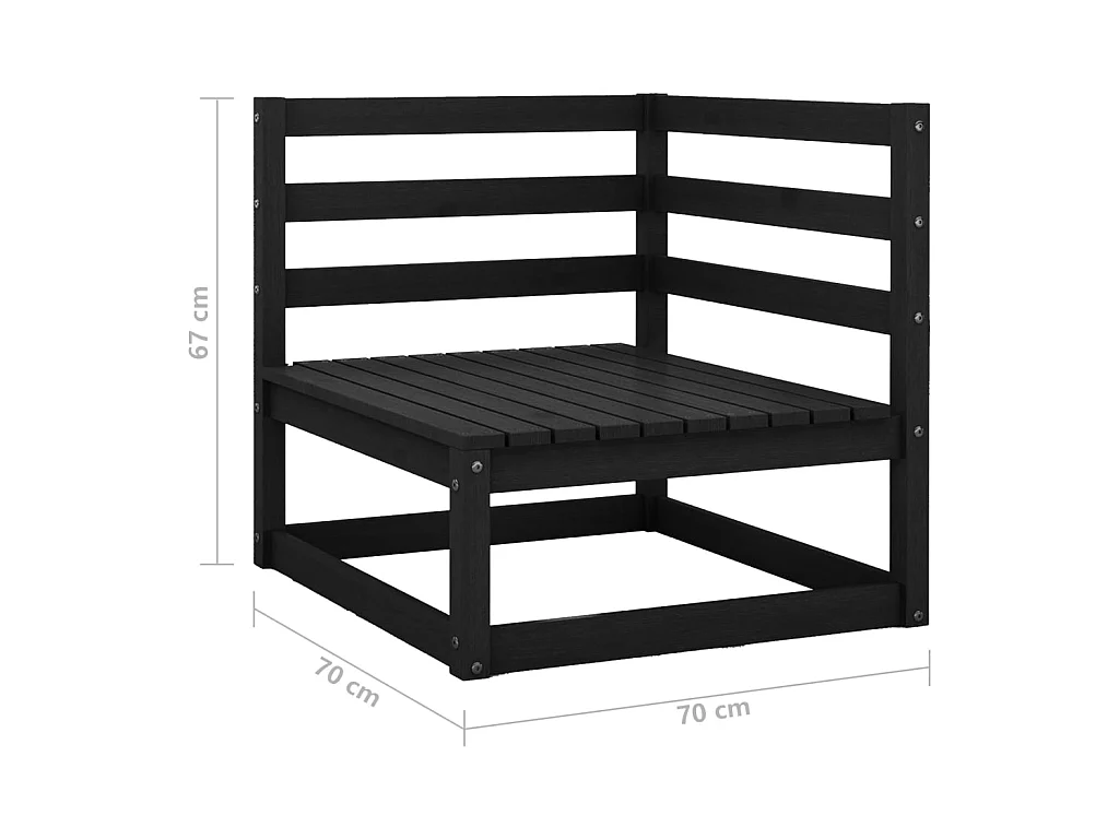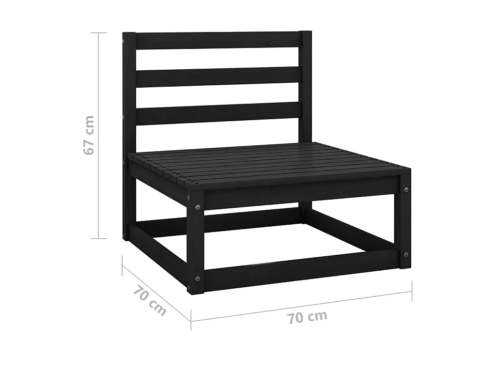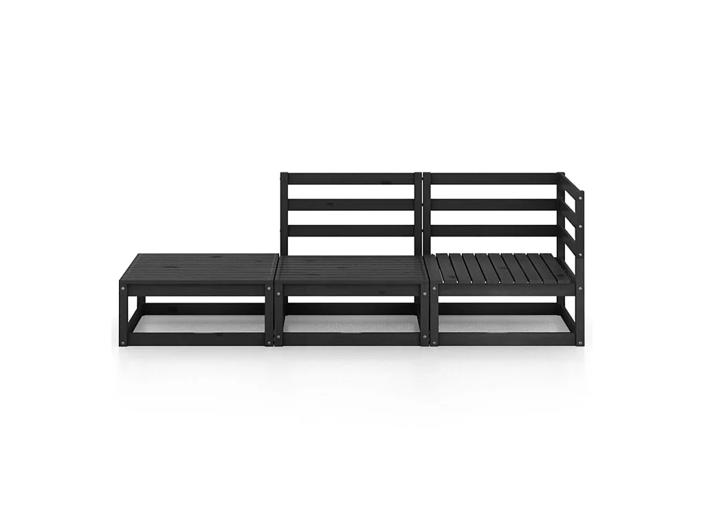 Salon de jardin 3 pcs Noir Bois de pin massif 4