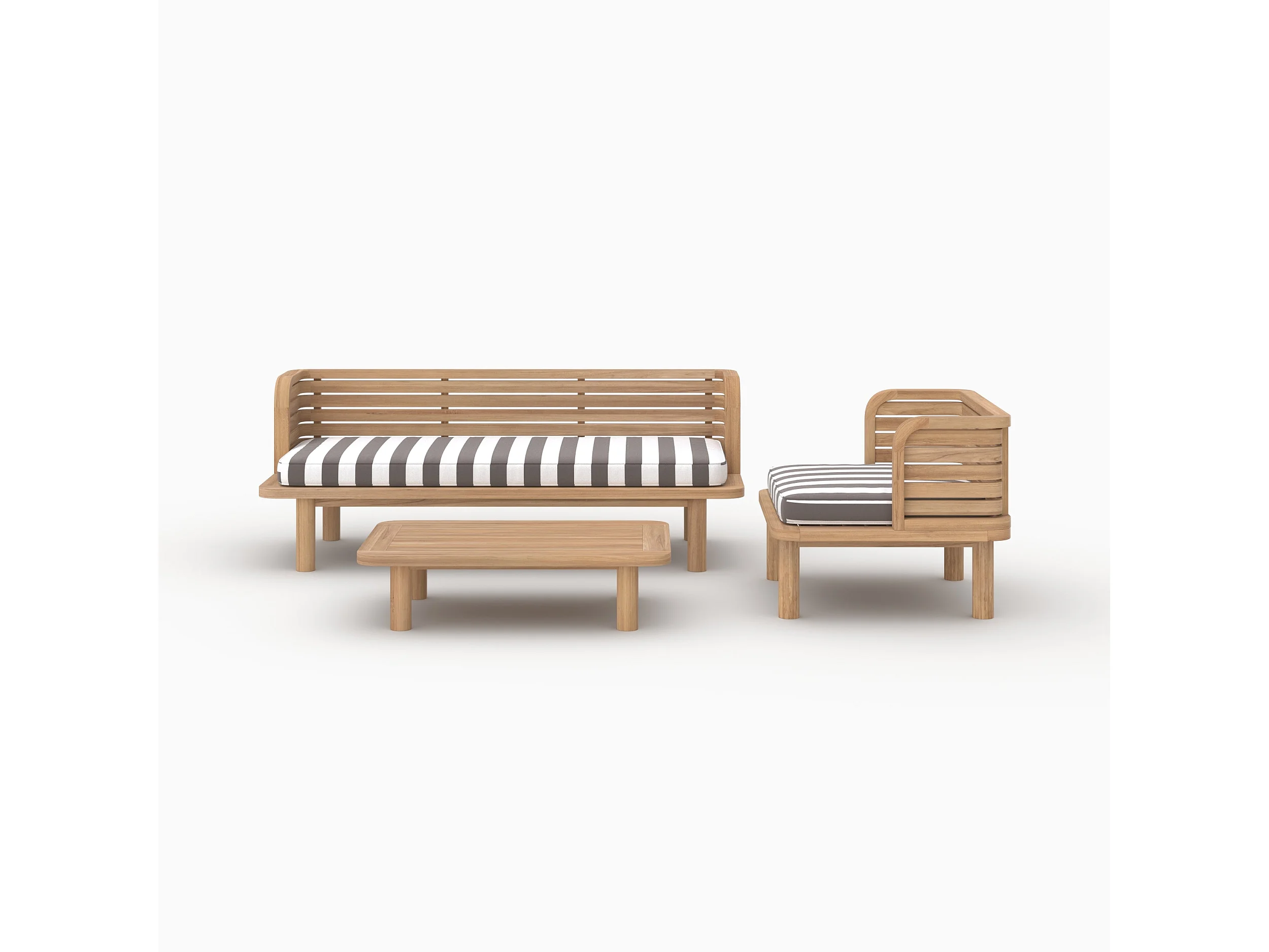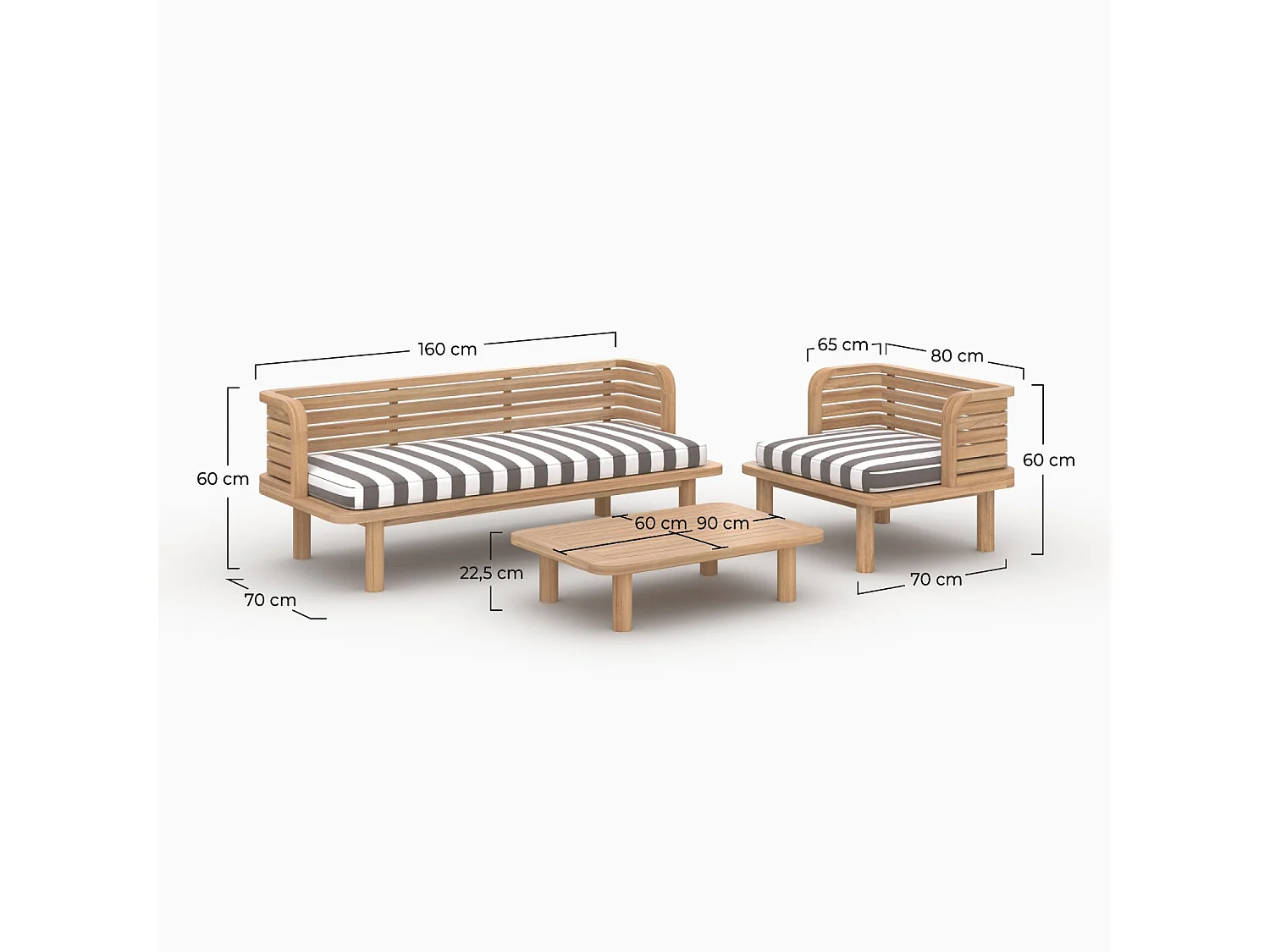 Salon de jardin 3 places en bois de teck et tissu rayé gris - Kilda