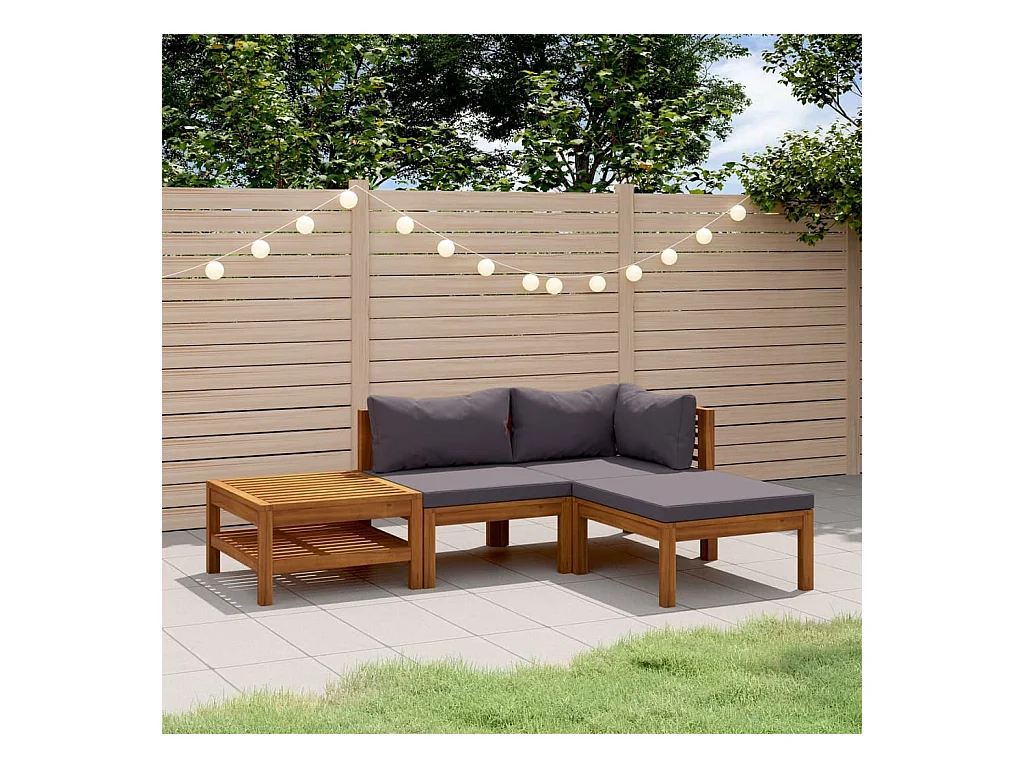 Salon de jardin 4 pcs avec coussin Bois d'acacia solide BE10138