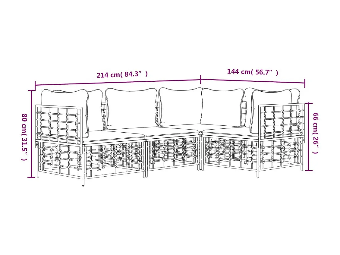 Salon de jardin 4 pcs avec coussins anthracite résine tressée