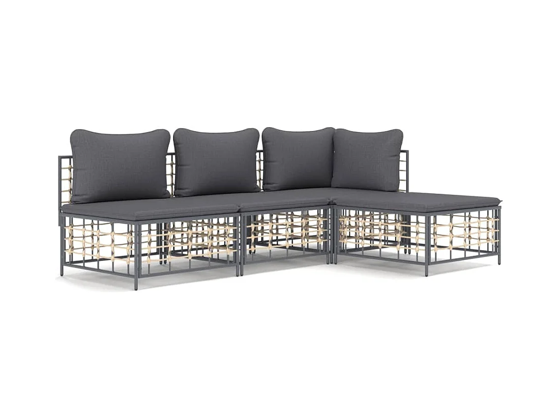 Salon de jardin 4 pcs avec coussins anthracite résine tressée REO37552