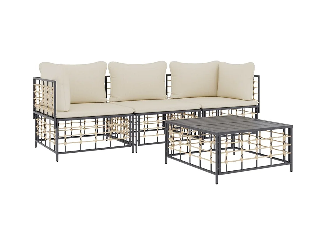 Salon de jardin 4 pcs avec coussins anthracite résine tressée REO96041