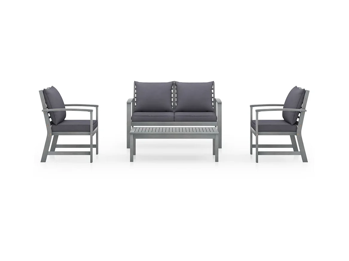 Salon de jardin 4 pcs avec coussins Bois d'acacia solide 15