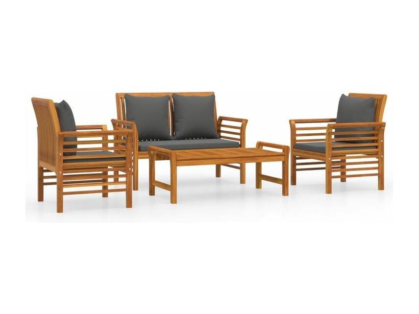 Salon de jardin 4 pcs avec coussins Bois d'acacia solide