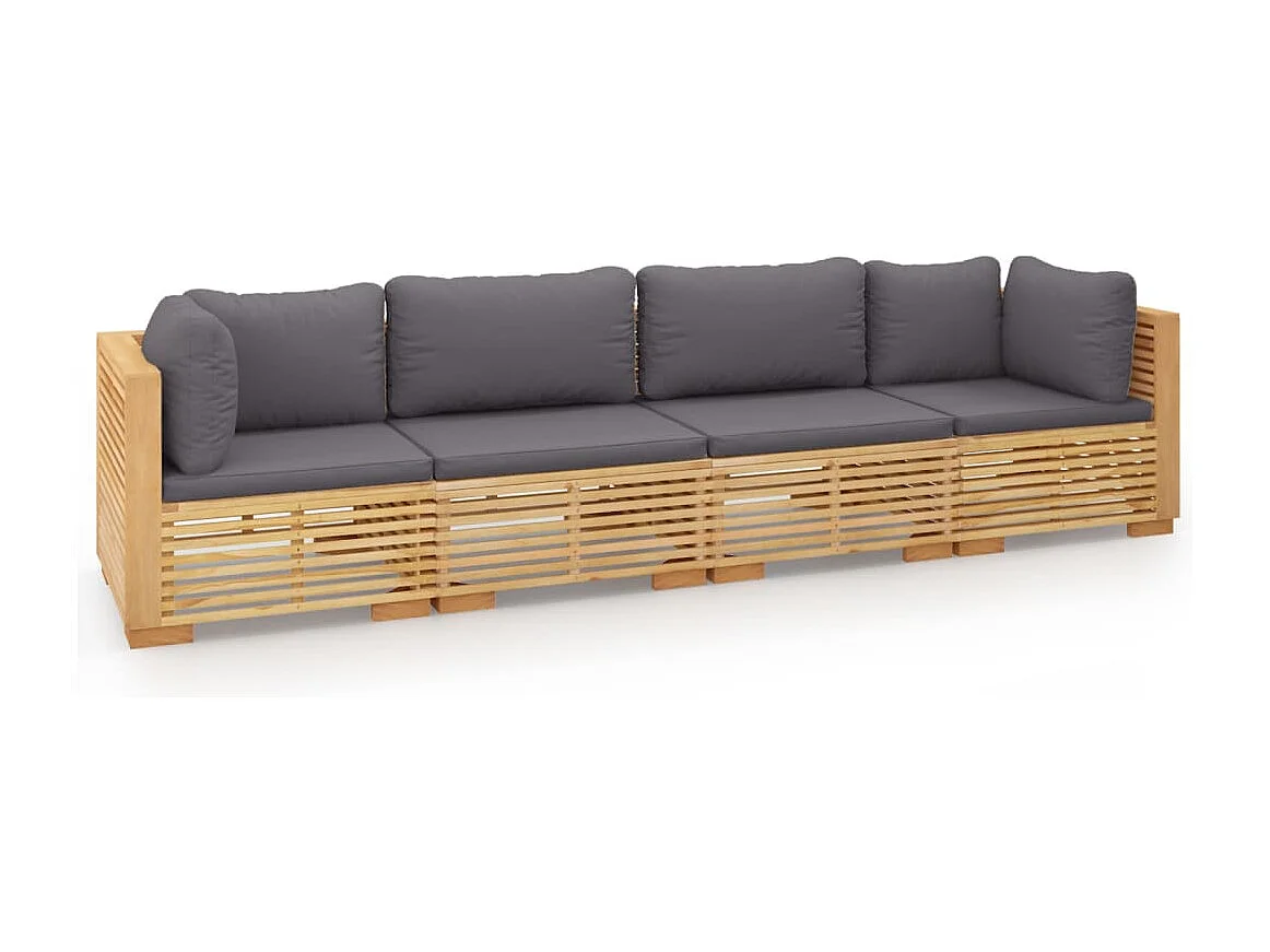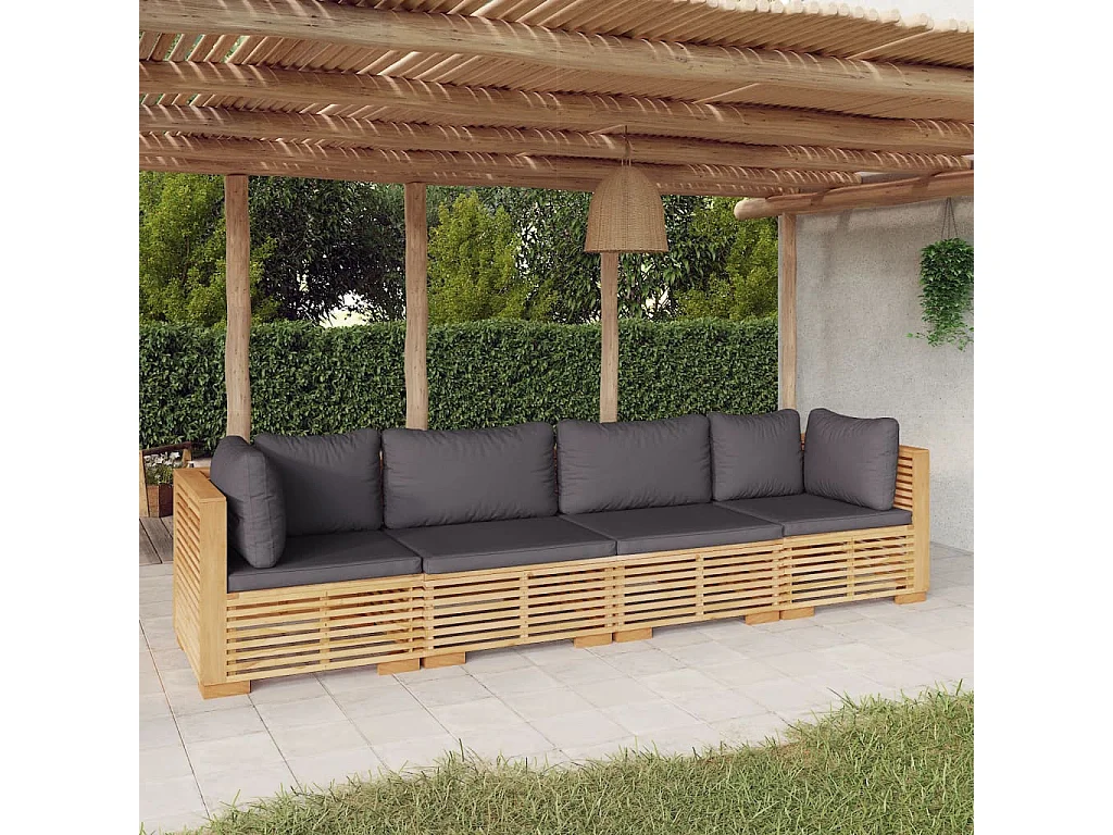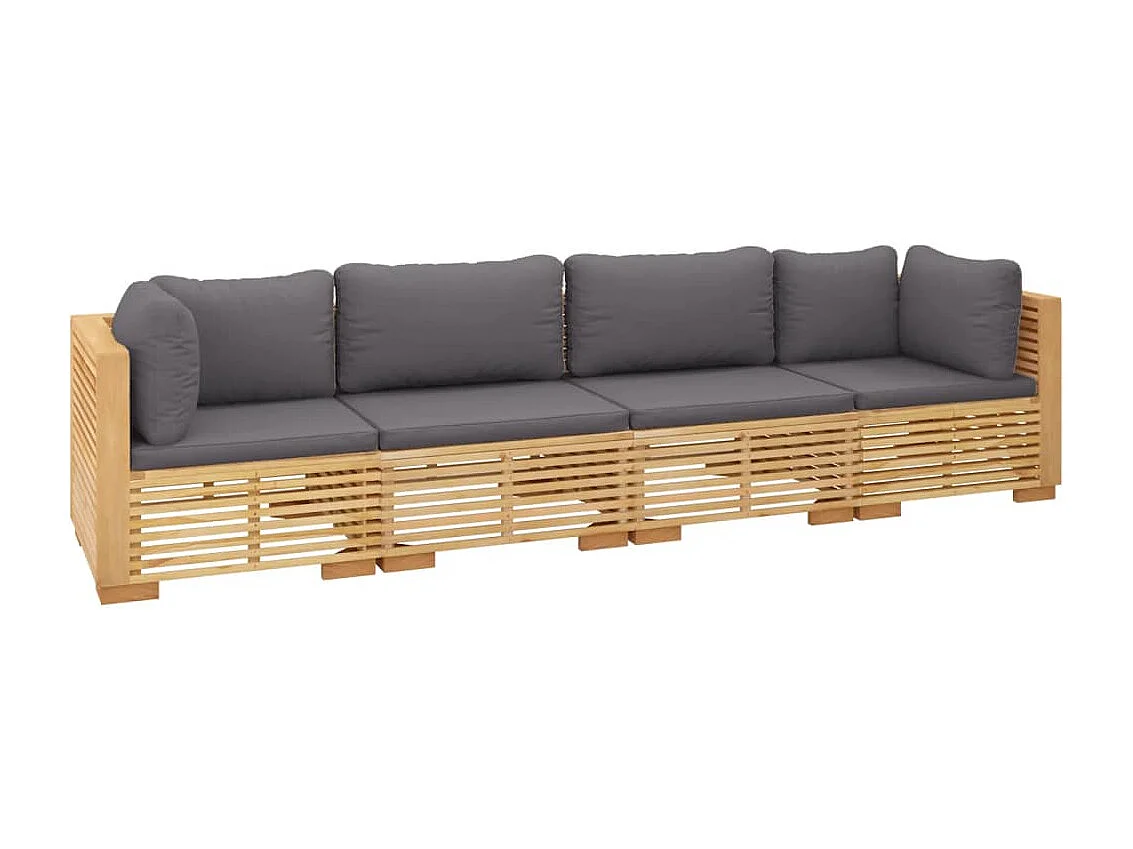 Salon de jardin 4 pcs avec coussins Bois de teck solide 2