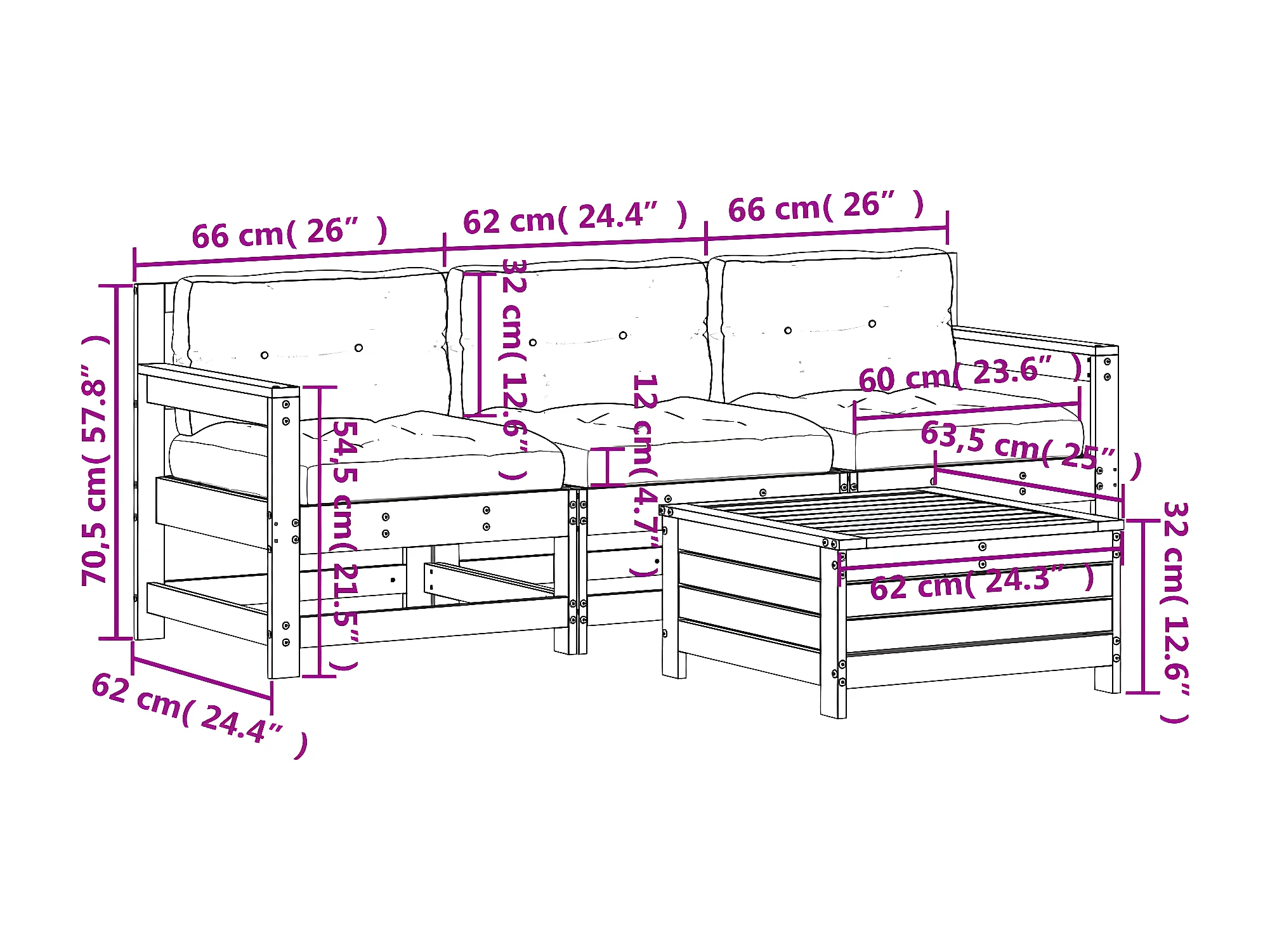 Salon de jardin 4 pcs avec coussins bois massif douglas
