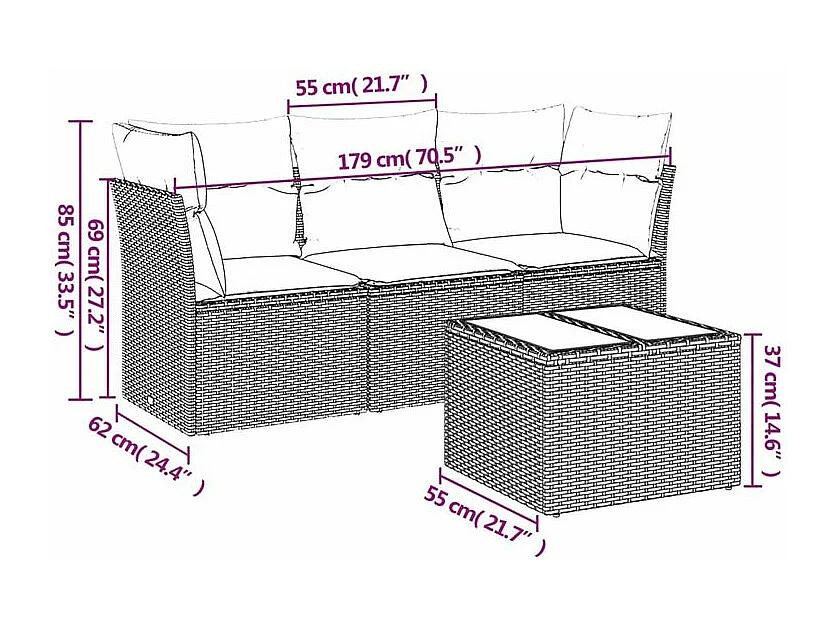Salon de jardin 4 pcs avec coussins gris clair résine tressée