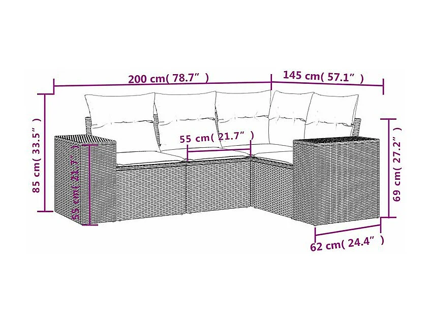 Salon de jardin 4 pcs avec coussins gris clair résine tressée