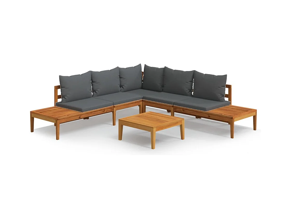 Salon de jardin 4 pcs avec coussins gris foncé Bois d'acacia