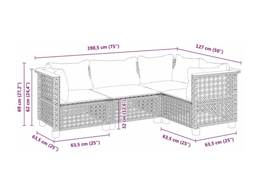 Salon de jardin 4 pcs avec coussins gris résine tressée