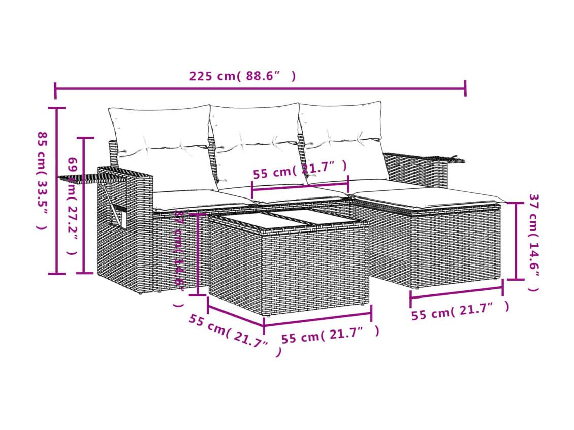 Salon de jardin 4 pcs avec coussins gris résine tressée FR87132