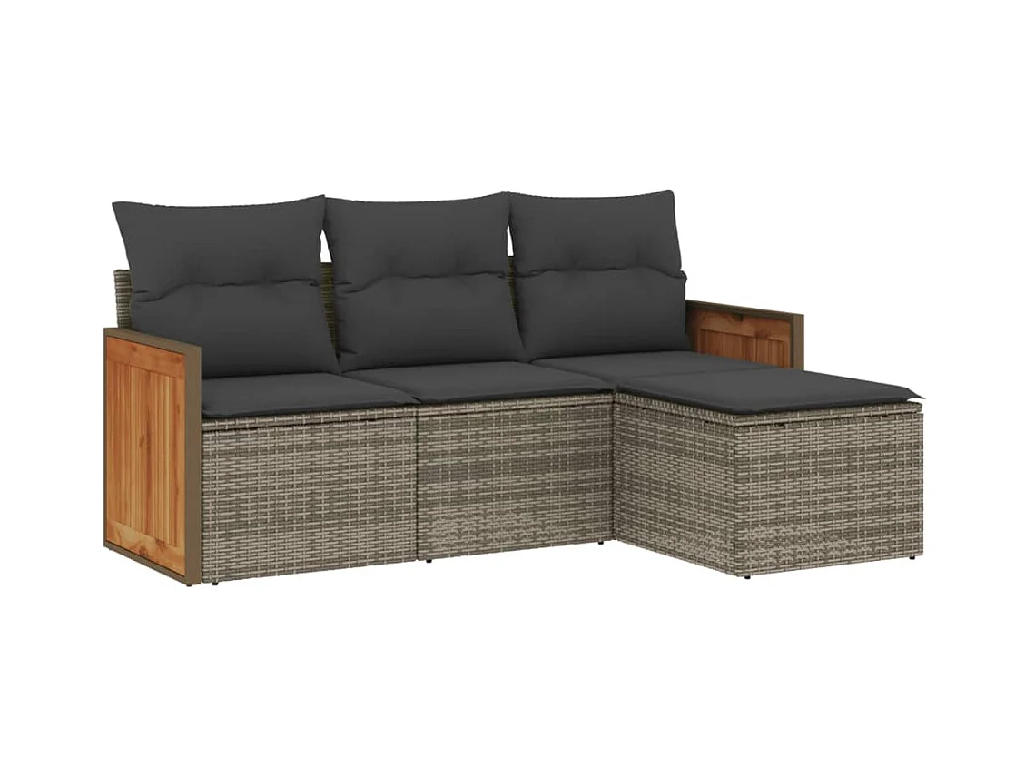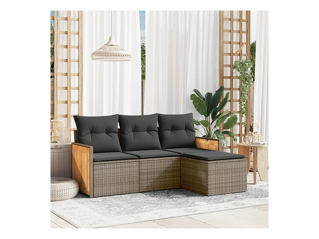 Salon de jardin 4 pcs avec coussins gris résine tressée FR97733