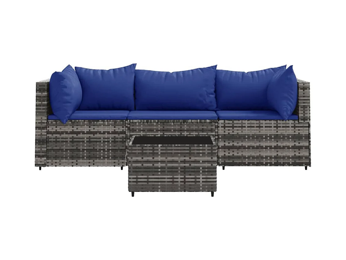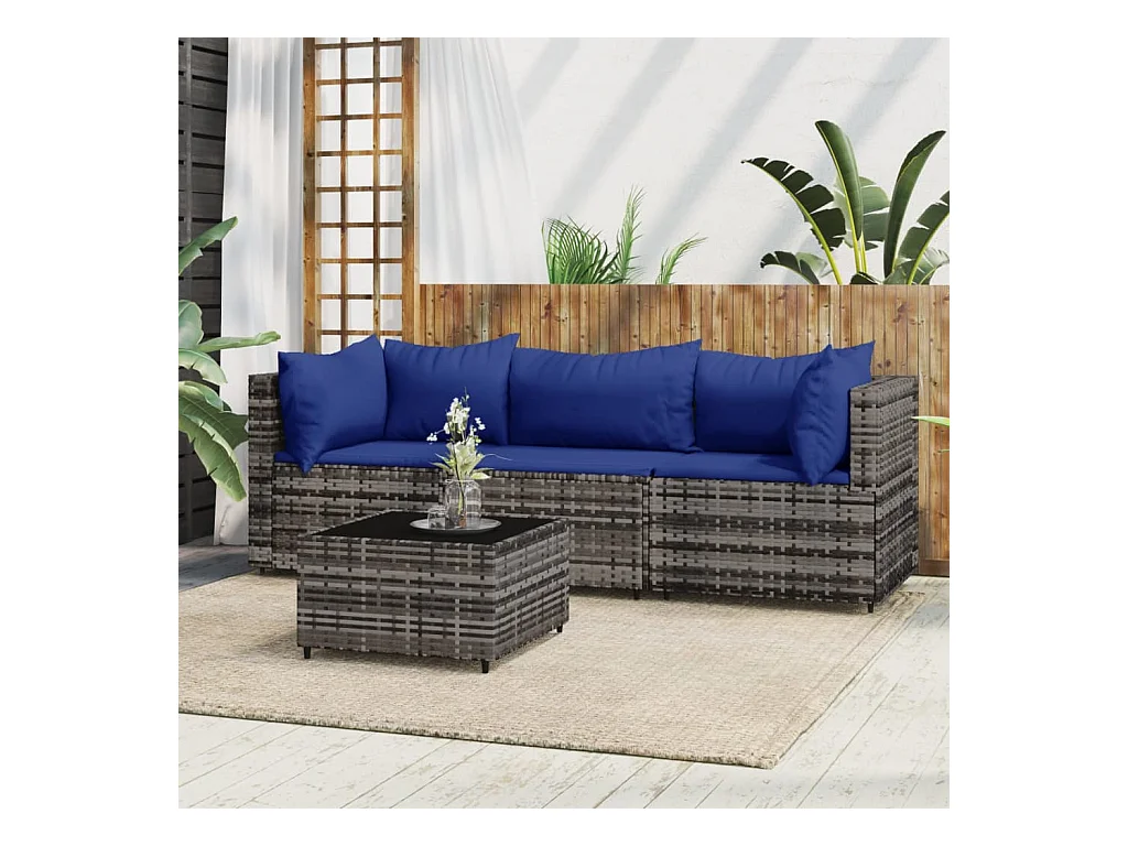 Salon de jardin 4 pcs avec coussins Gris Résine tressée REO20400