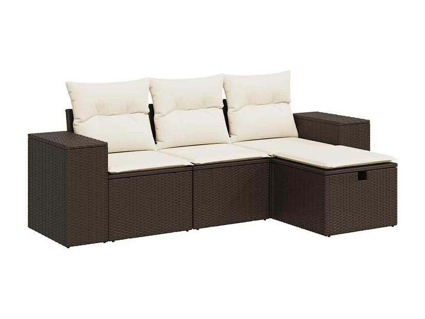 Salon de jardin 4 pcs avec coussins marron résine tressée