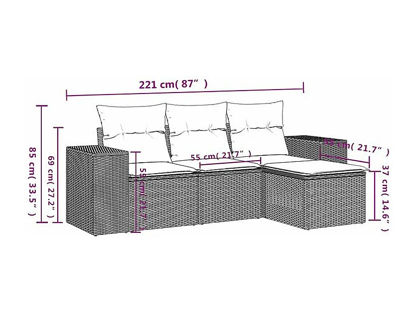 Salon de jardin 4 pcs avec coussins marron résine tressée