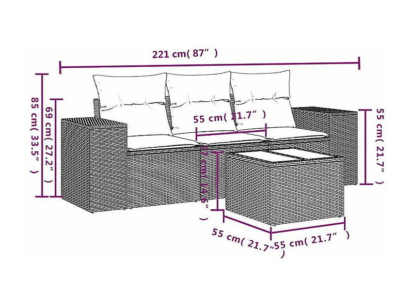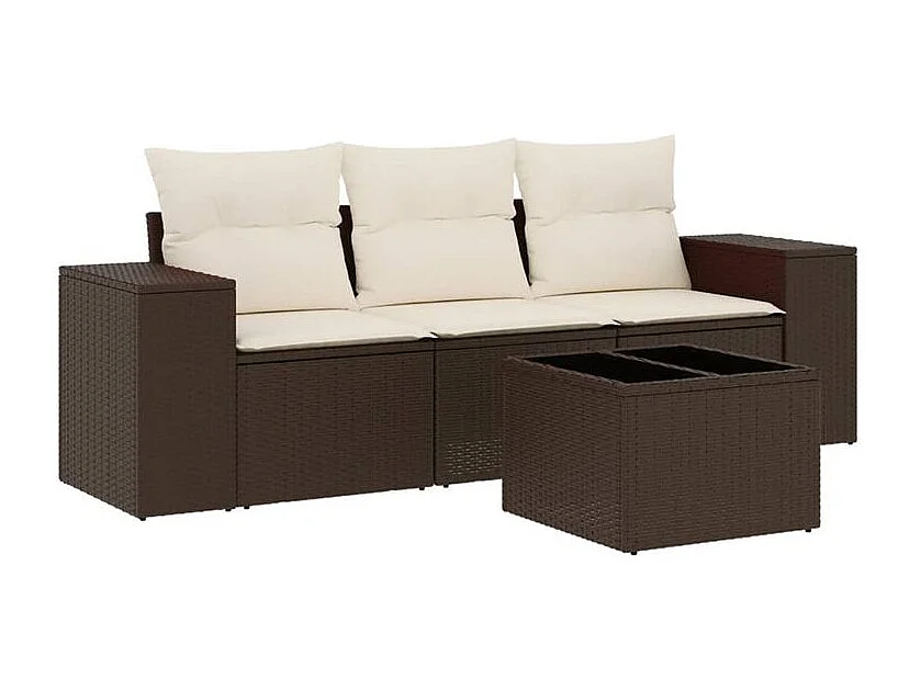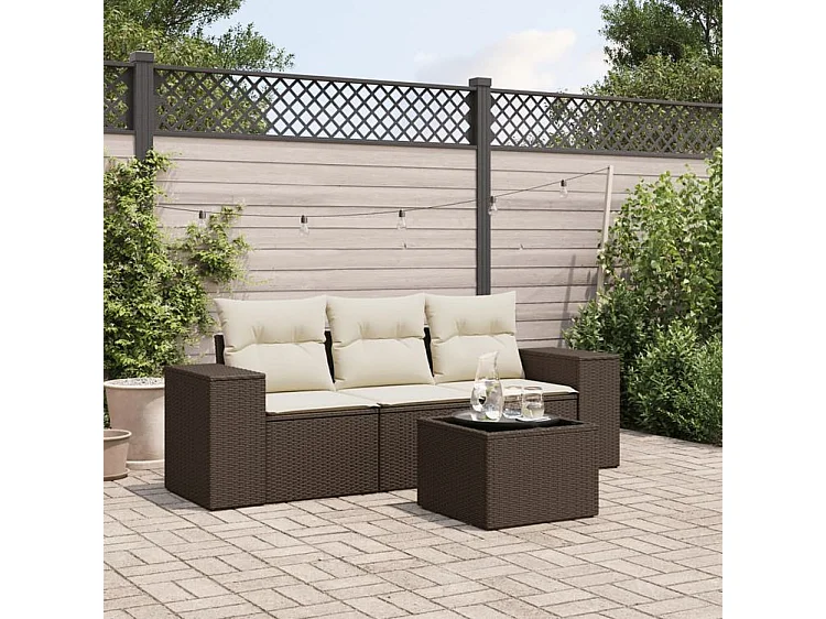 Salon de jardin 4 pcs avec coussins marron résine tressée