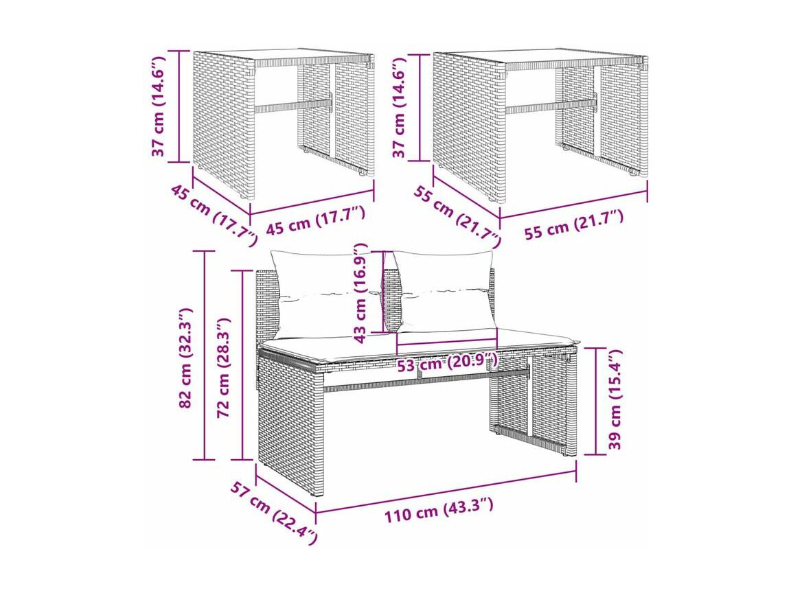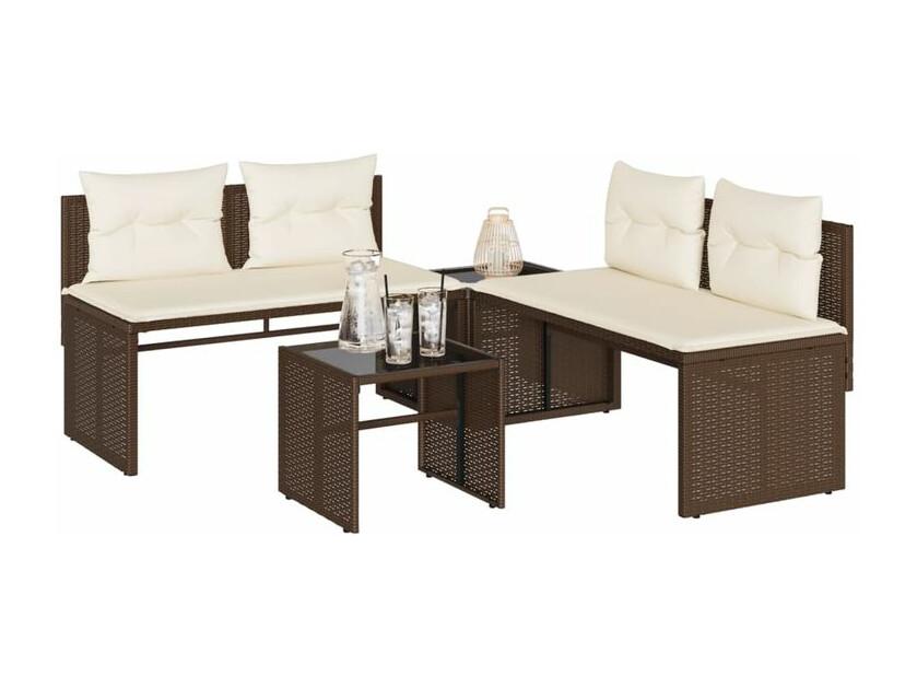Salon de jardin 4 pcs avec coussins marron résine tressée