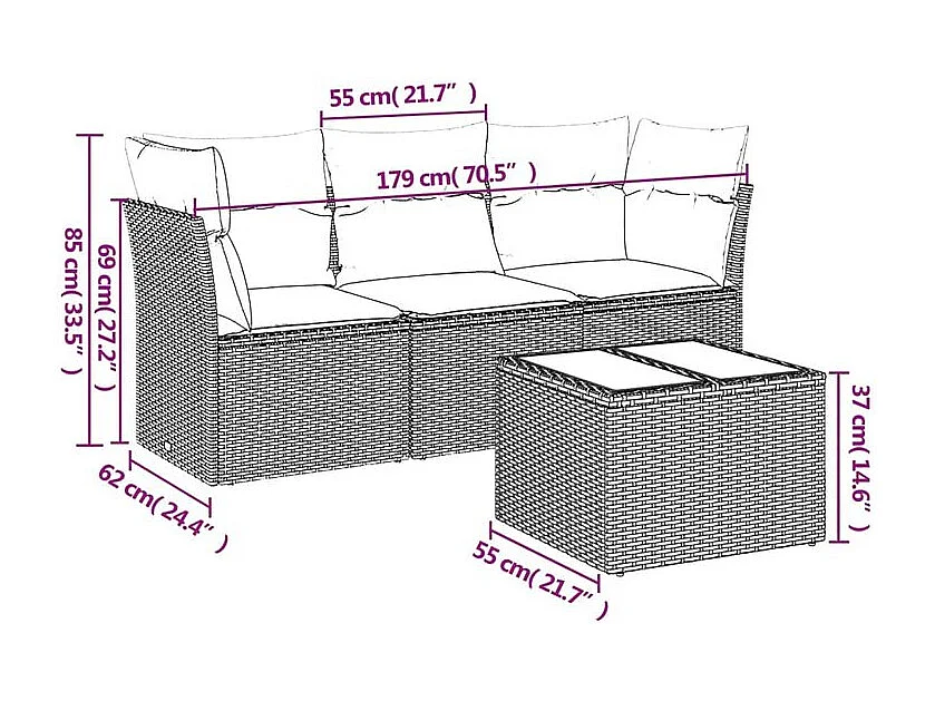 Salon de jardin 4 pcs avec coussins marron résine tressée