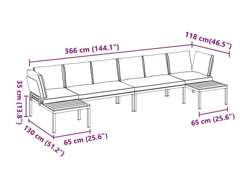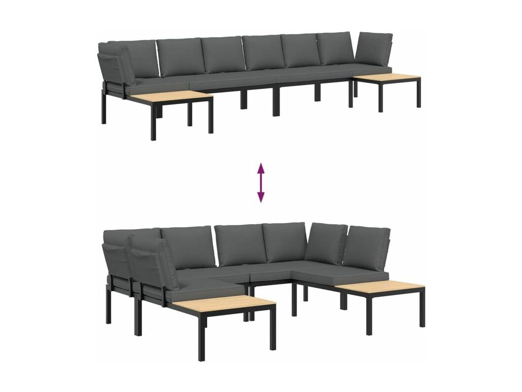 Salon de jardin 4 pcs avec coussins noir aluminium