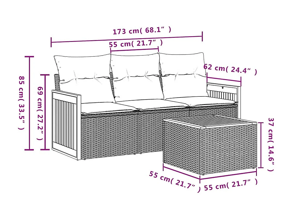 Salon de jardin 4 pcs avec coussins noir résine tressée