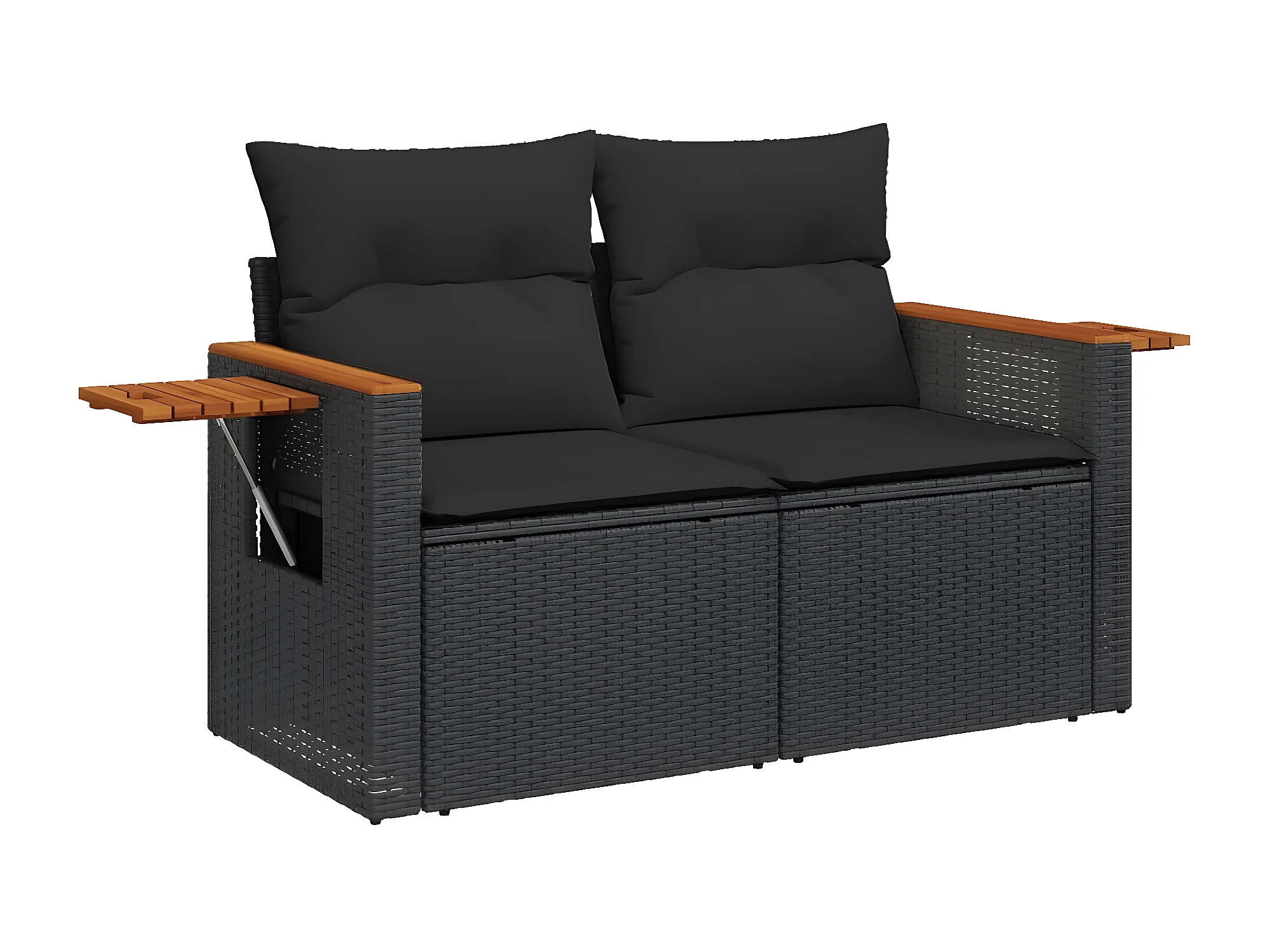Salon de jardin 4 pcs avec coussins noir résine tressée