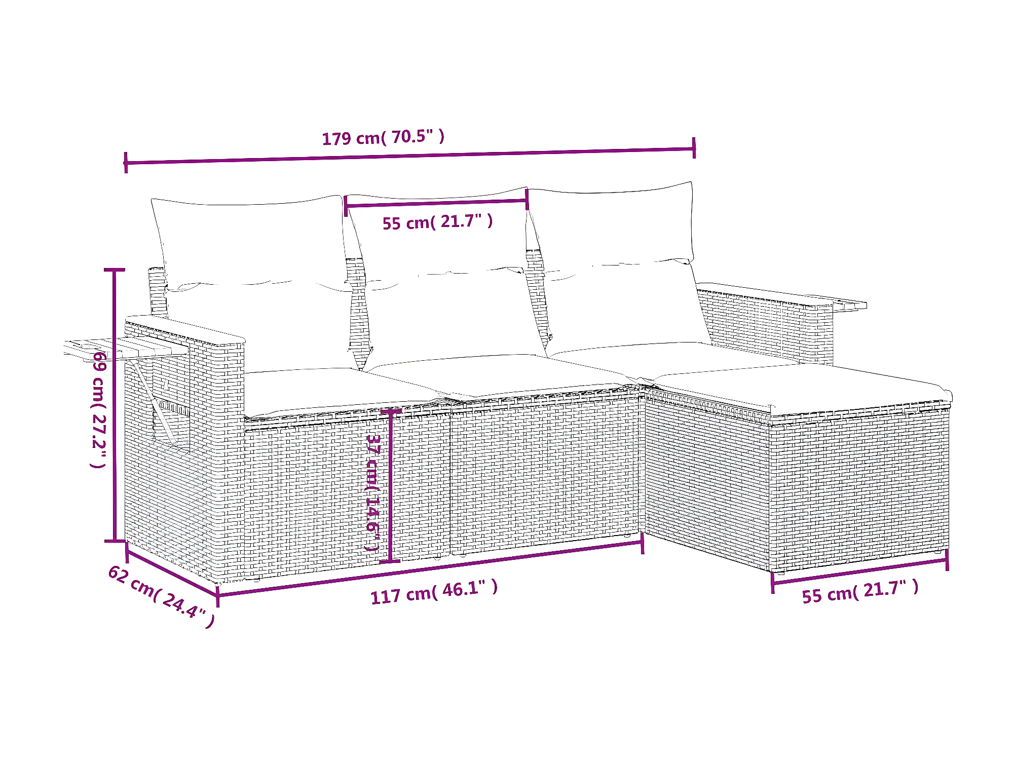 Salon de jardin 4 pcs avec coussins noir résine tressée