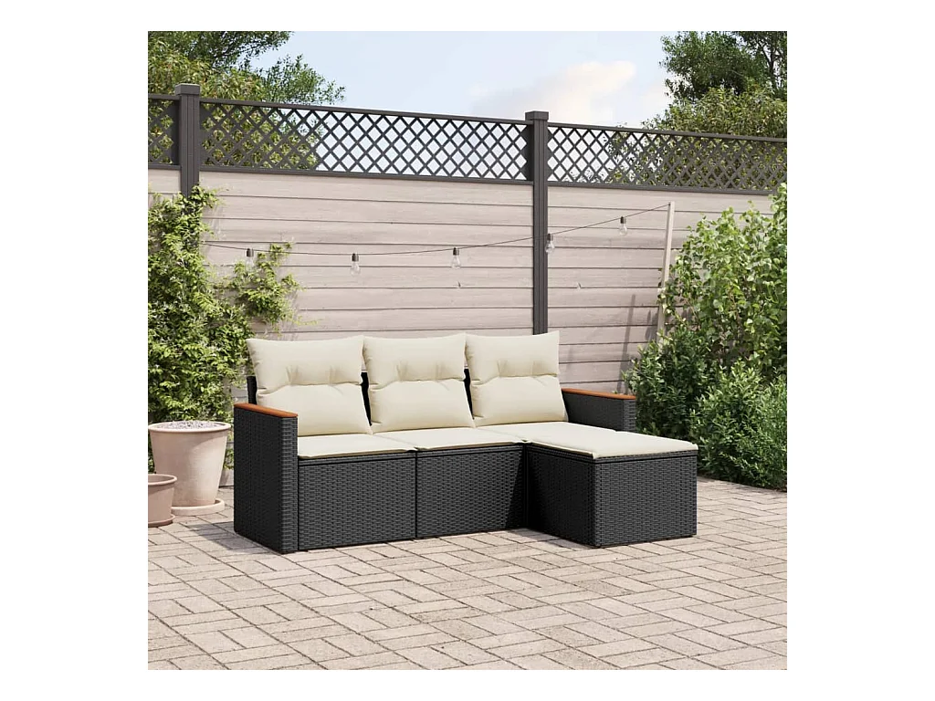 Salon de jardin 4 pcs avec coussins noir résine tressée FR22008