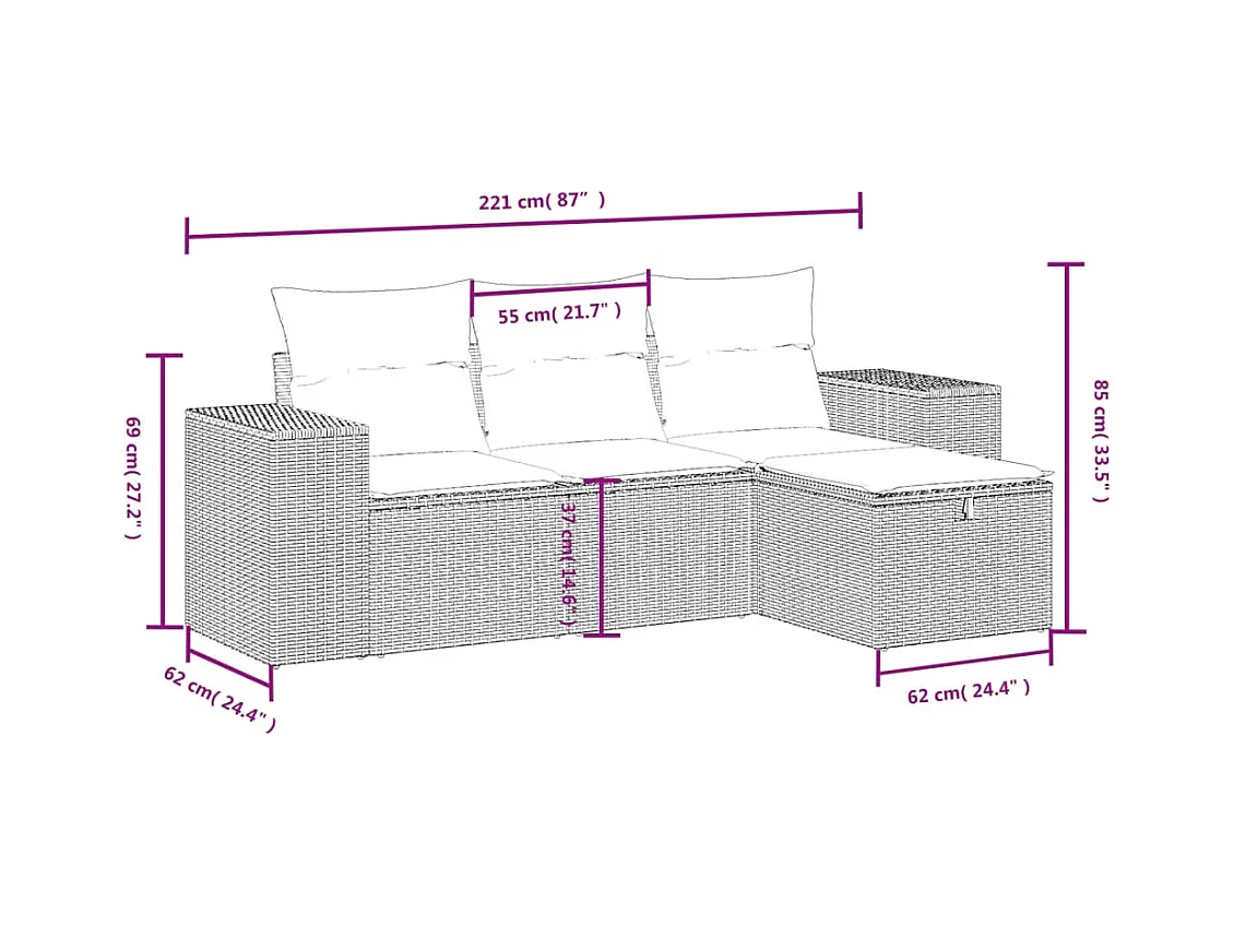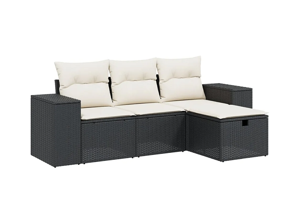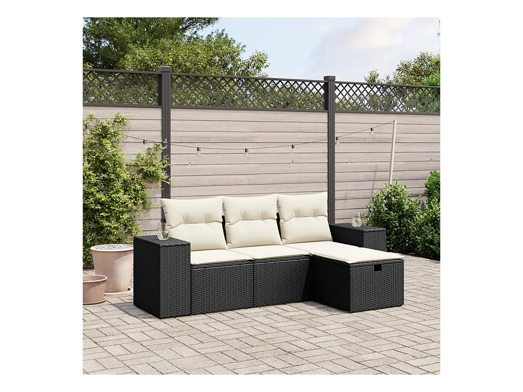 Salon de jardin 4 pcs avec coussins noir résine tressée FR50085