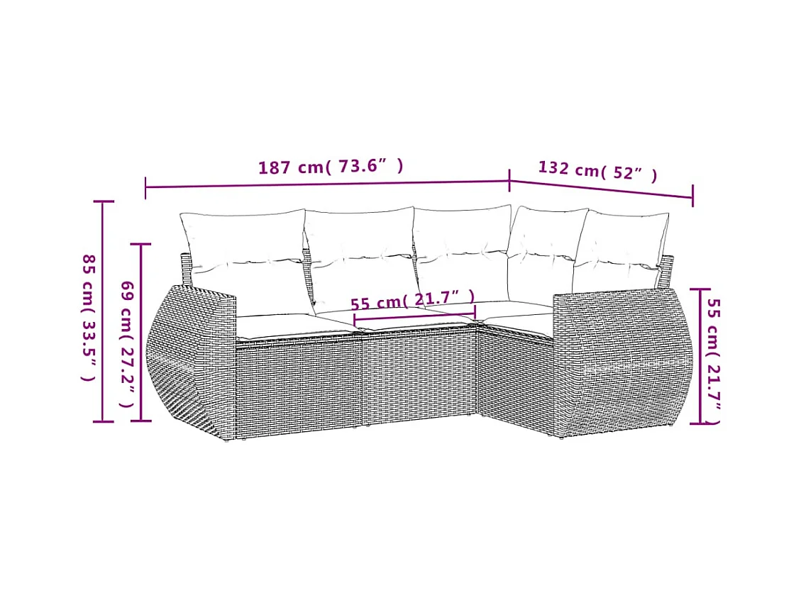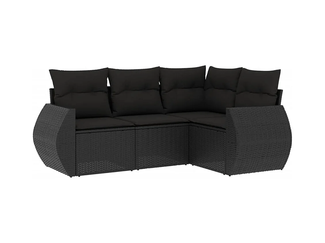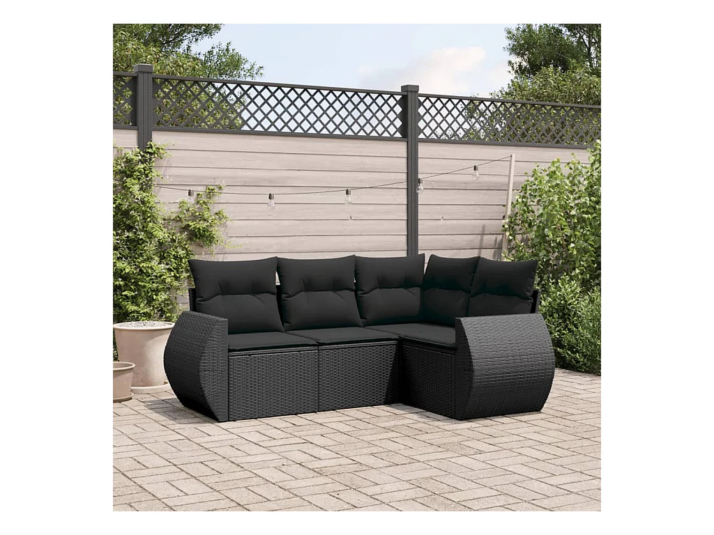 Salon de jardin 4 pcs avec coussins noir résine tressée FR52927