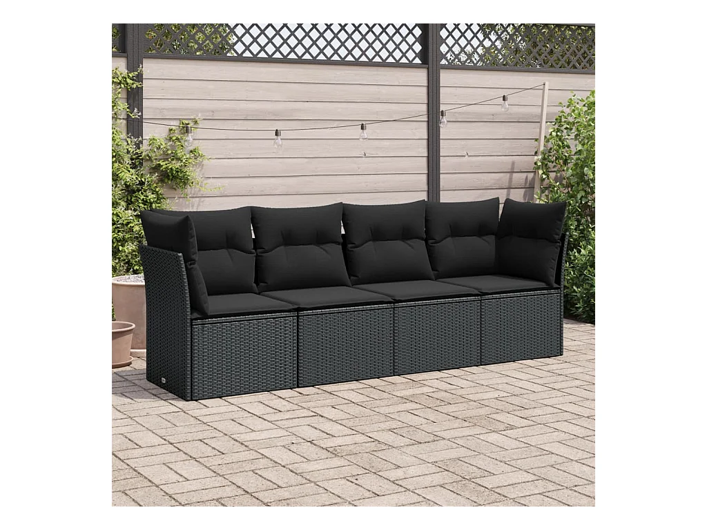 Salon de jardin 4 pcs avec coussins noir résine tressée BE72483