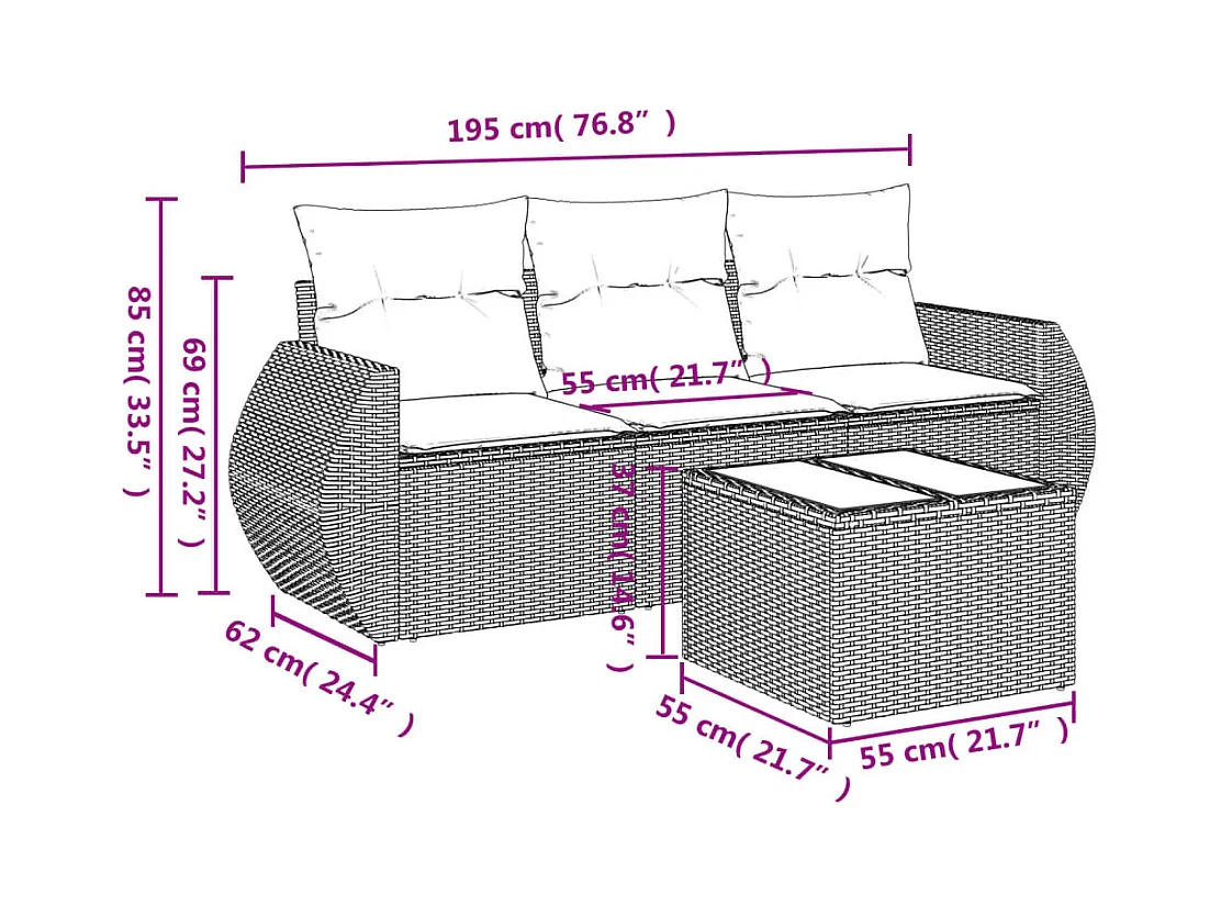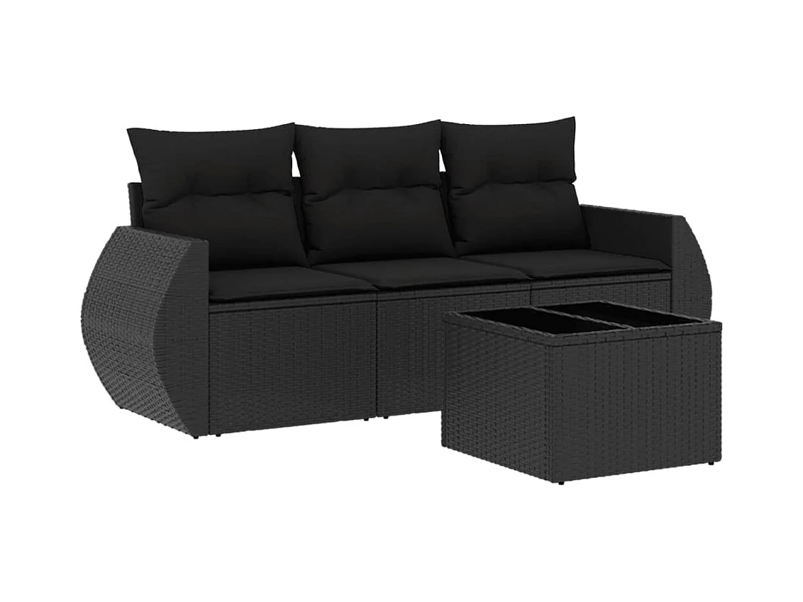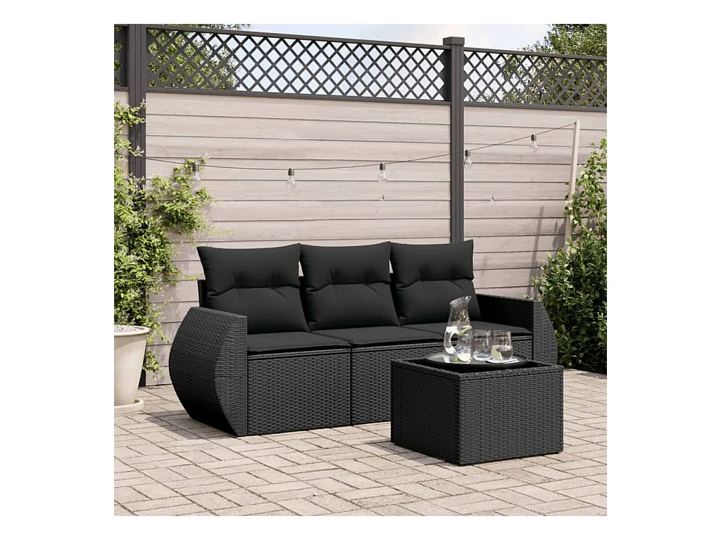 Salon de jardin 4 pcs avec coussins noir résine tressée BE32993