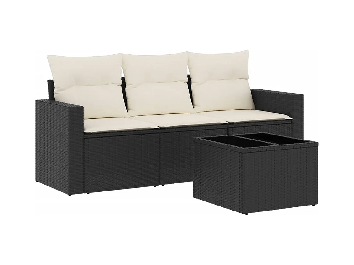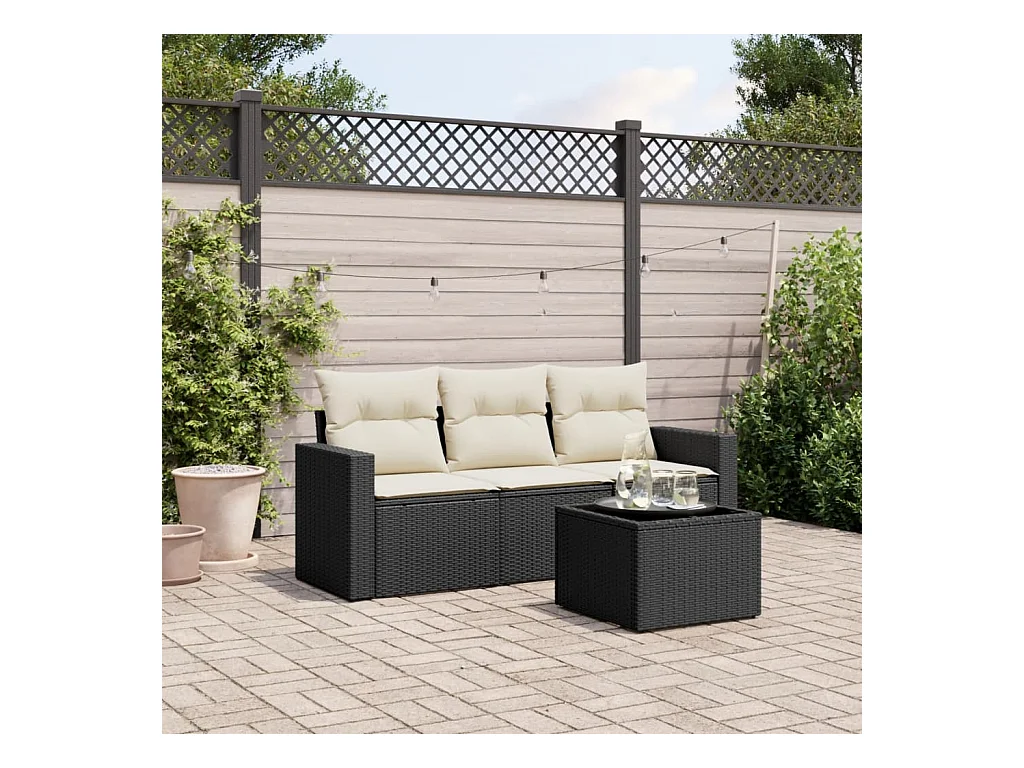Salon de jardin 4 pcs avec coussins noir résine tressée BE36089