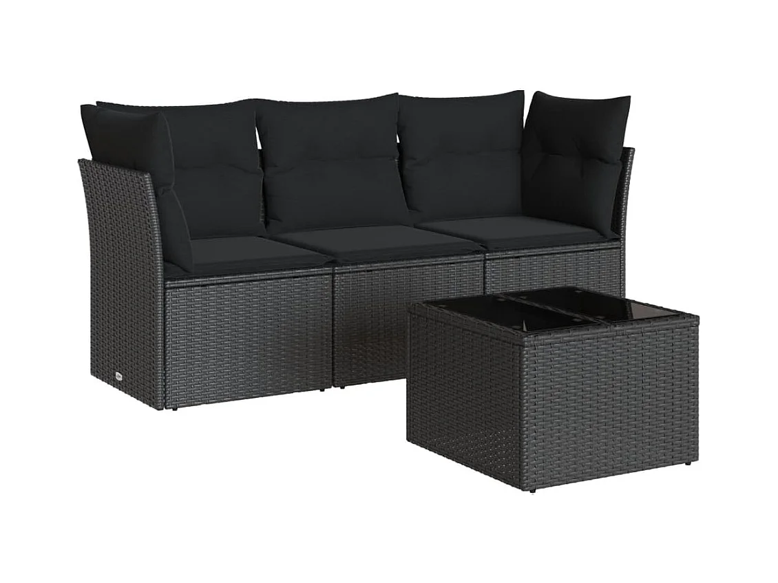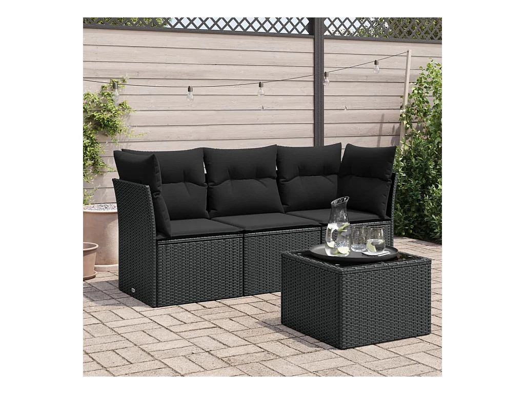 Salon de jardin 4 pcs avec coussins noir résine tressée BE59115