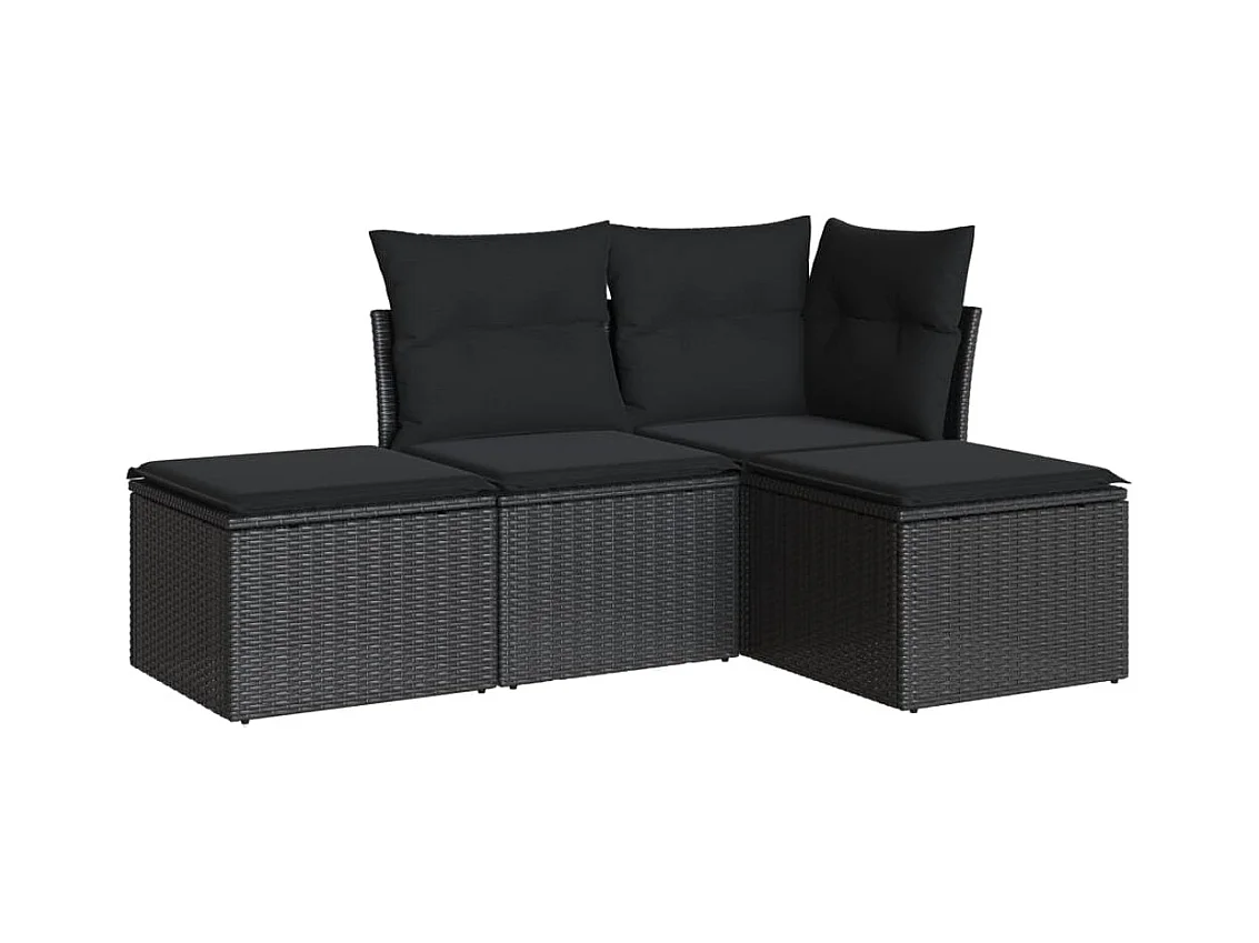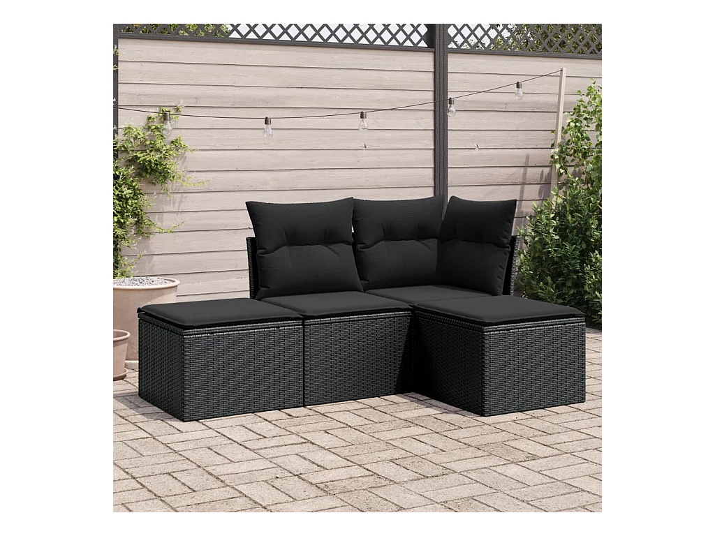 Salon de jardin 4 pcs avec coussins noir résine tressée BE14032