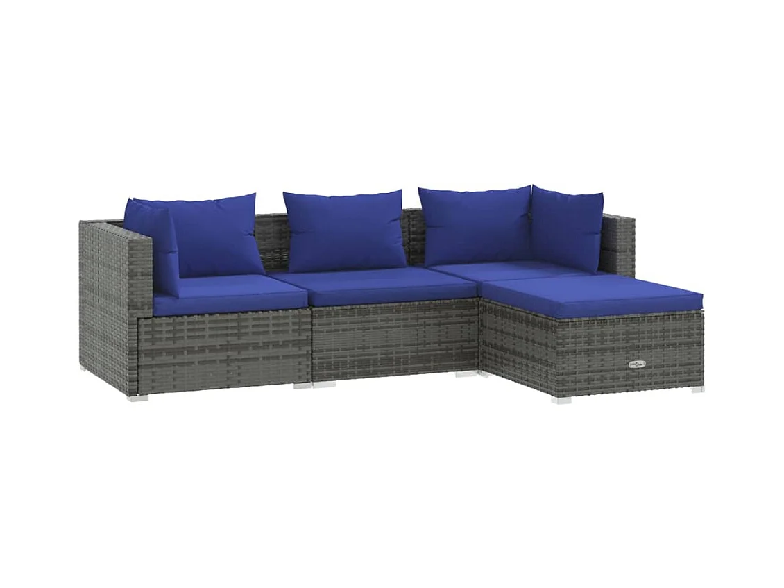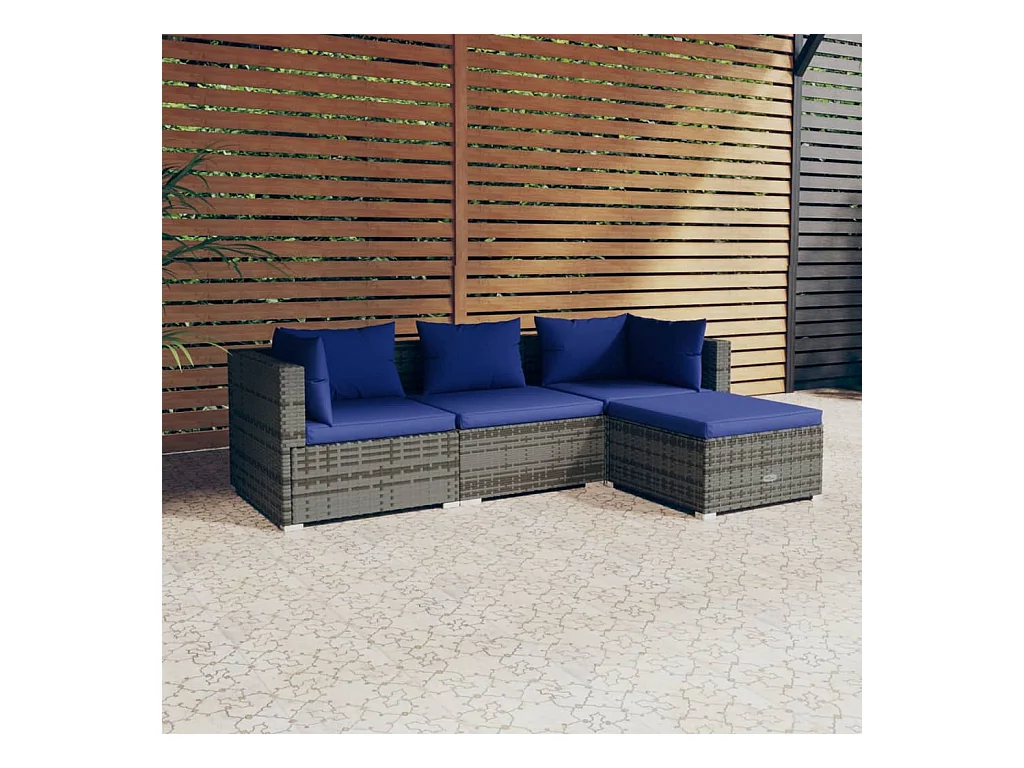 Salon de jardin 4 pcs avec coussins résine tressée gris BE87983