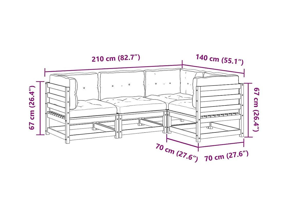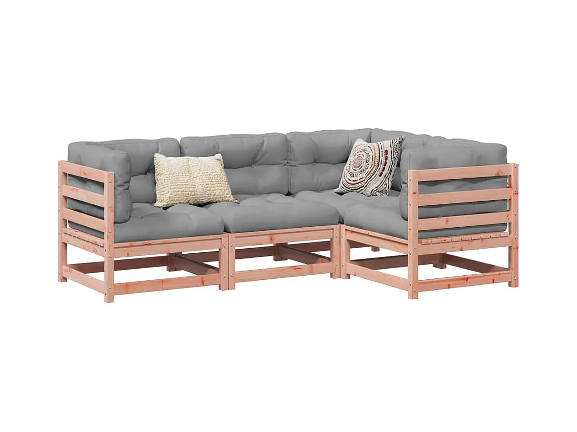 Salon de jardin 4 pcs et coussins bois massif sapin de douglas
