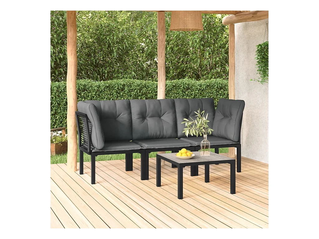 Salon de jardin 4 pcs noir et gris résine tressée