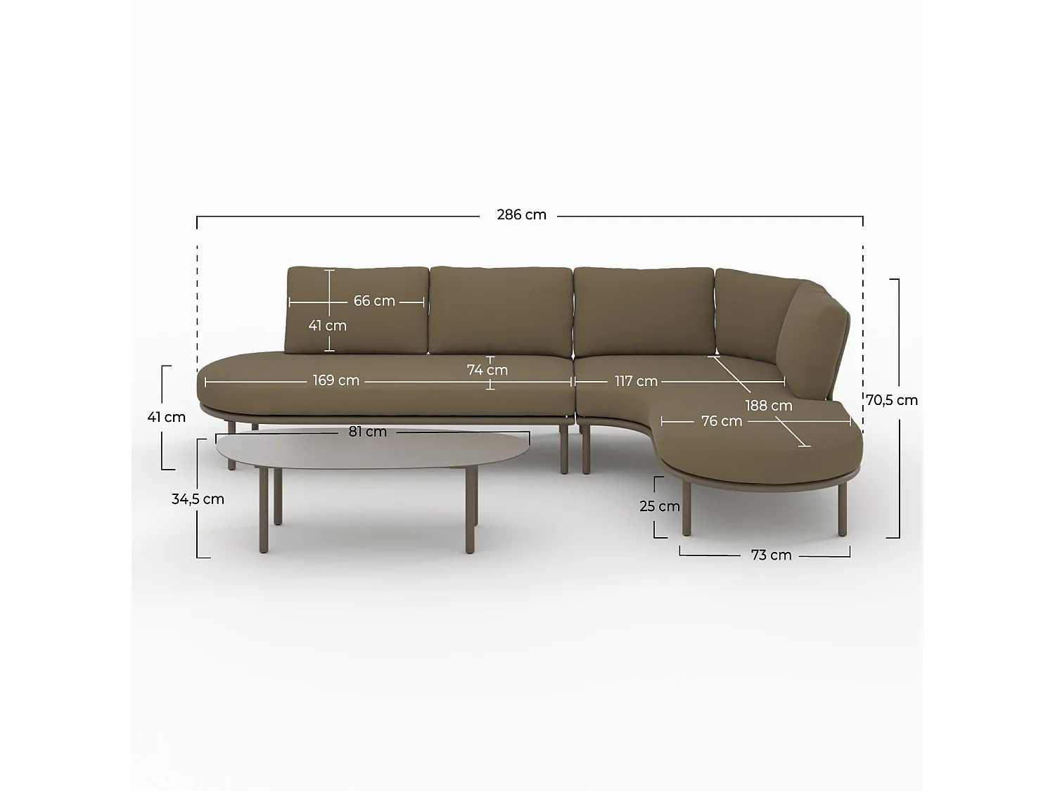 Salon de jardin 4 personnes en métal et tissu - Amaya