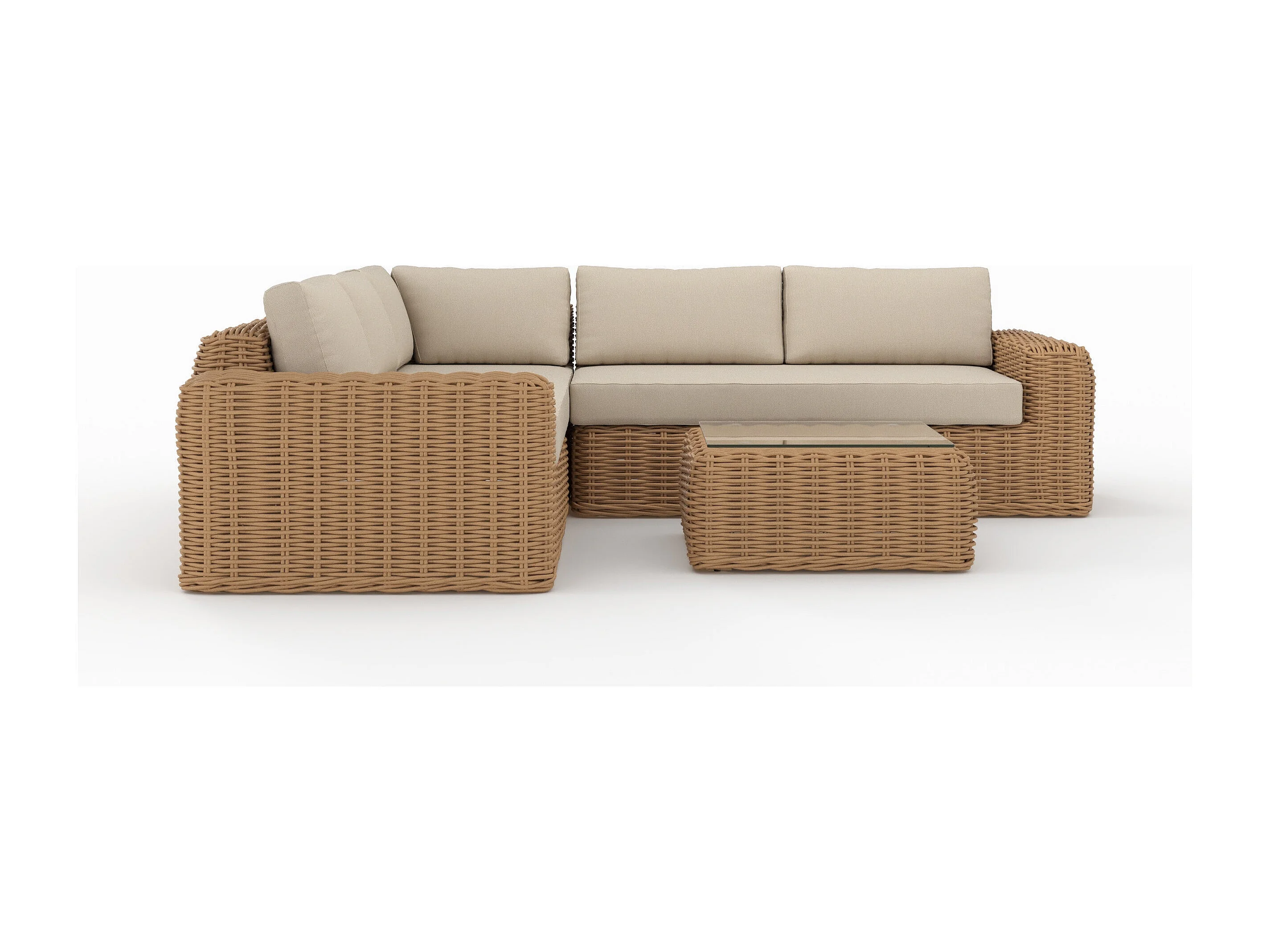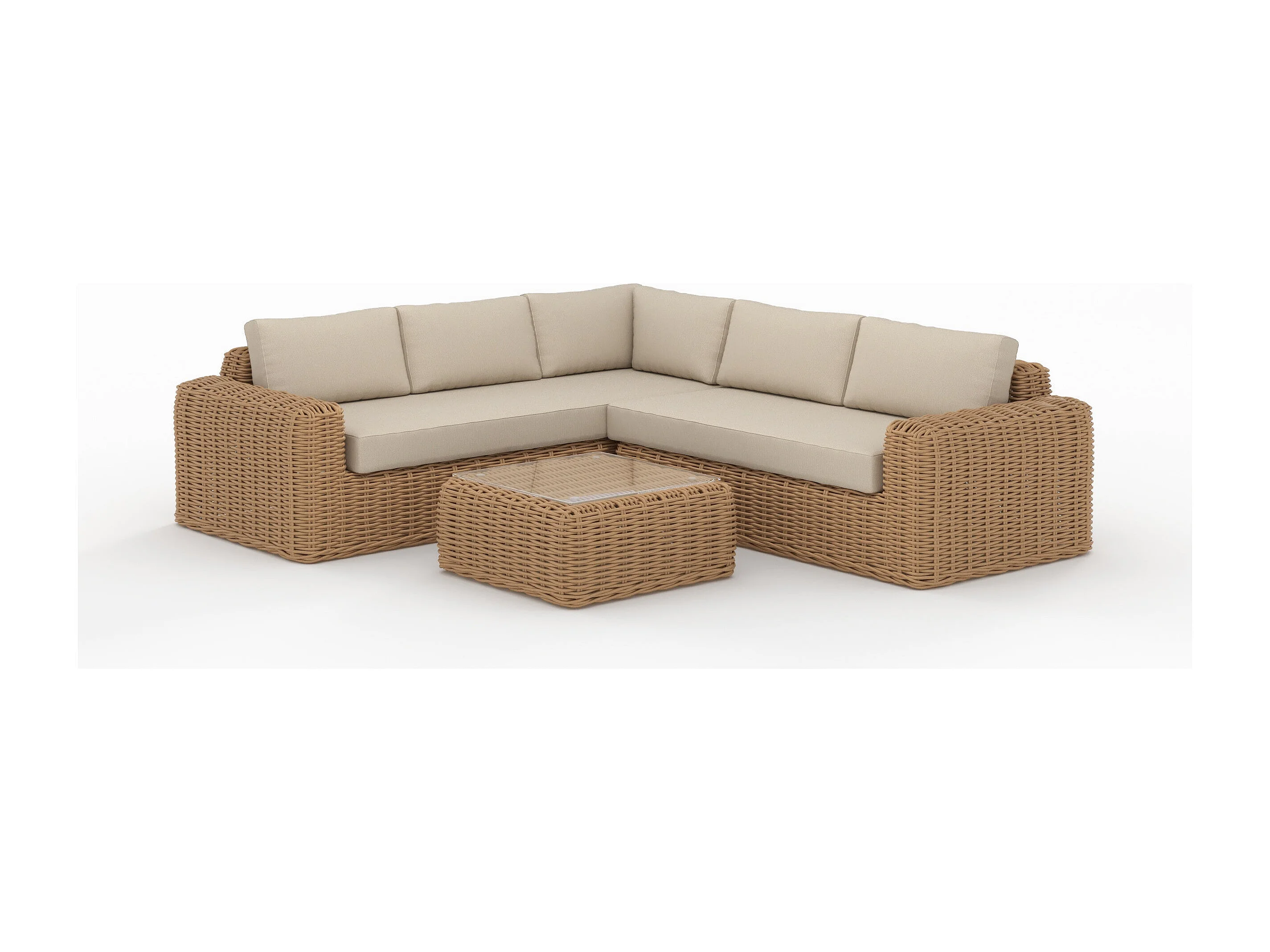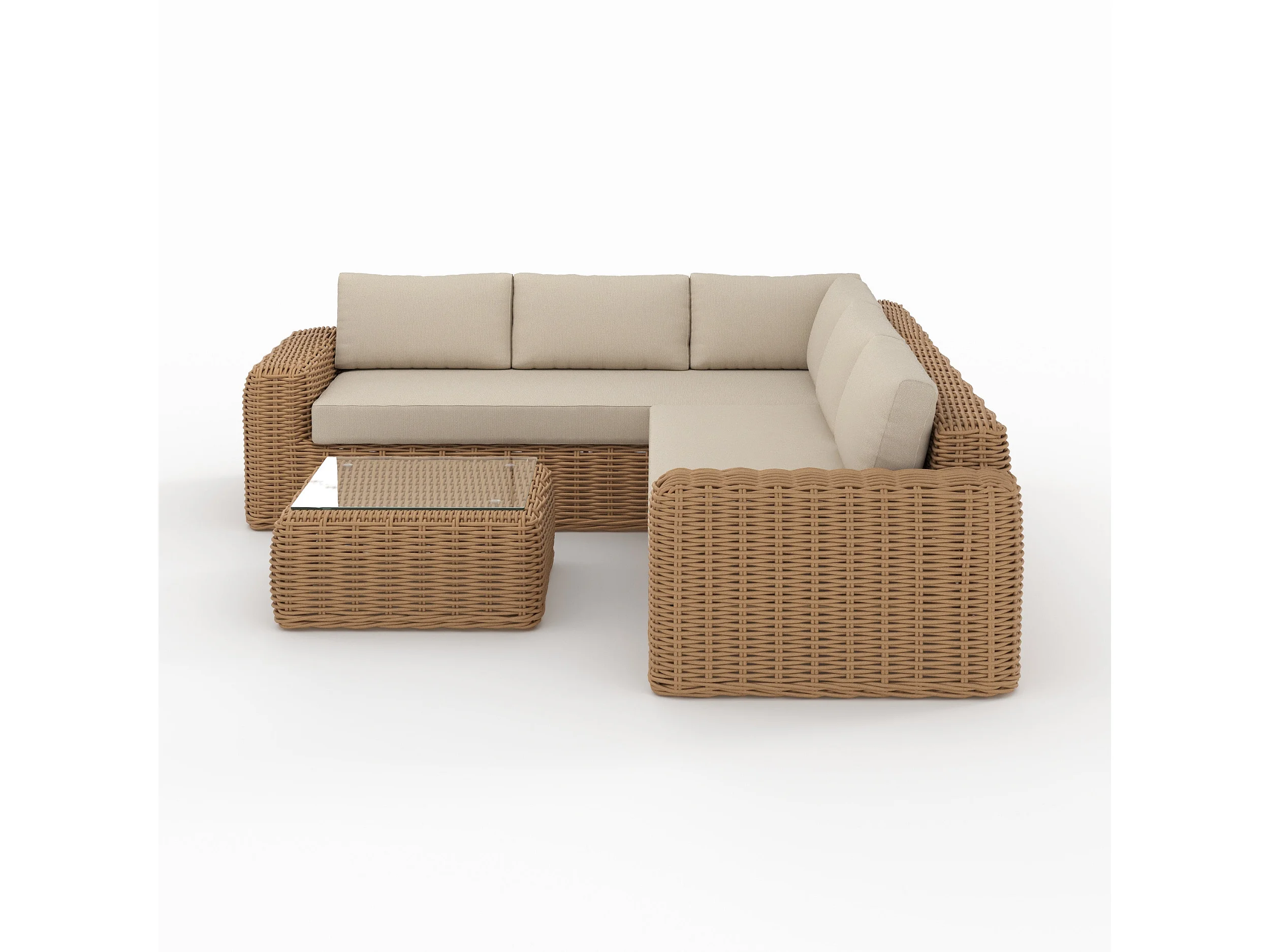 Salon de jardin 4 personnes en résine tressé et tissu beige - Savana