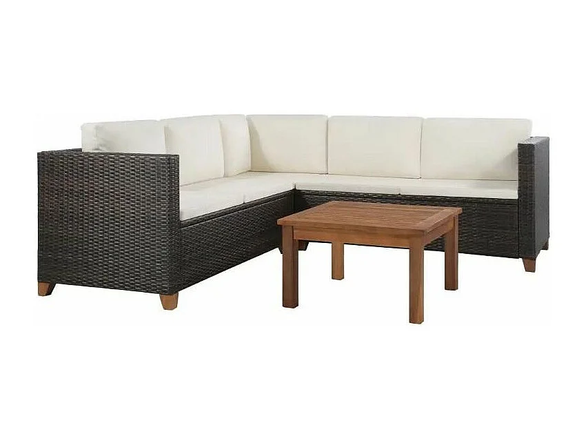 Salon de jardin 4 pièces acacia clair et résine tressée marron Cassia