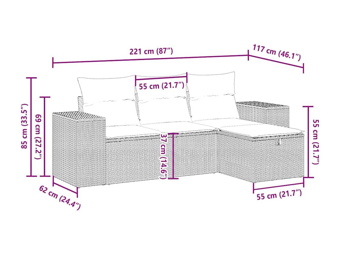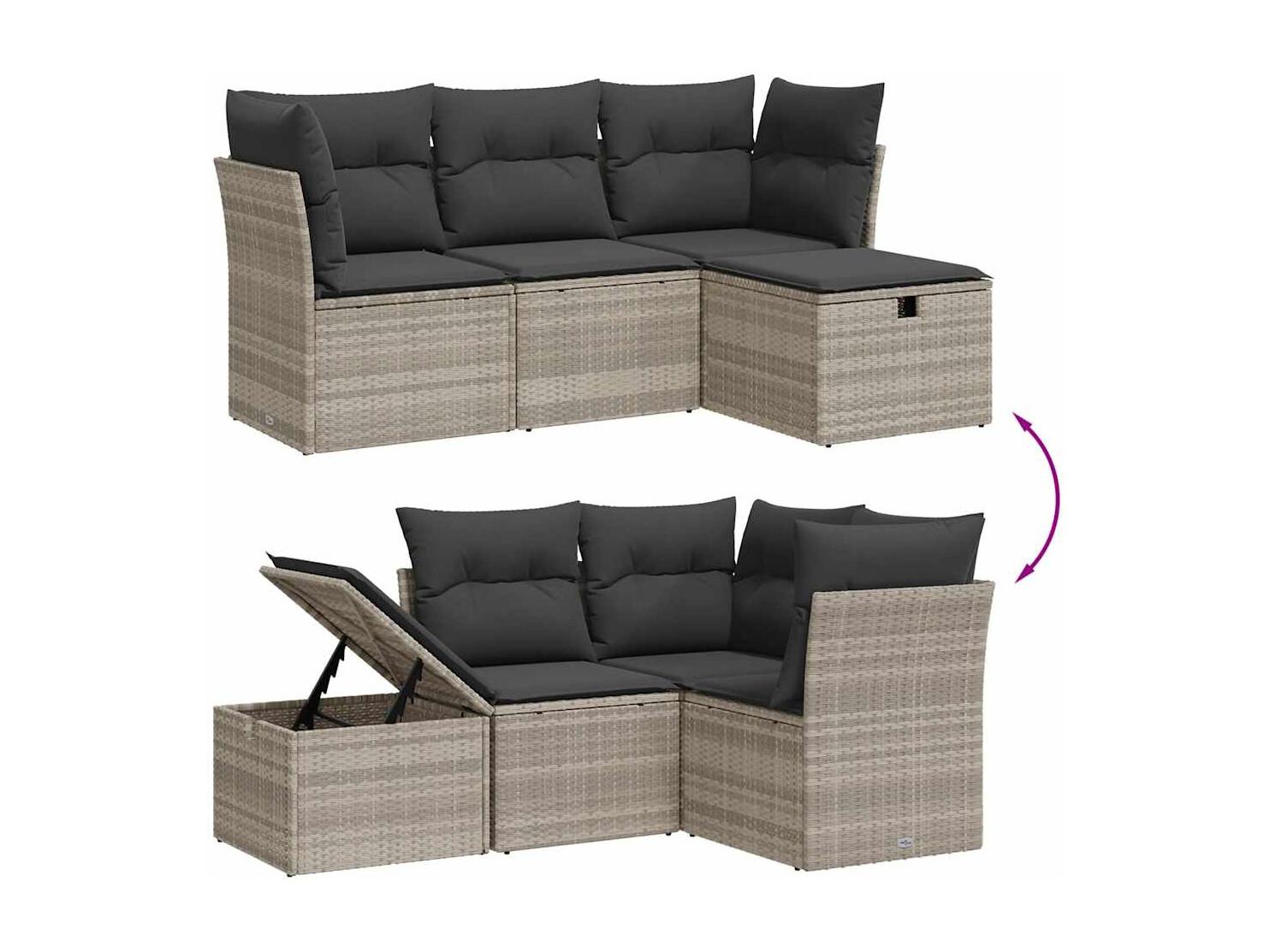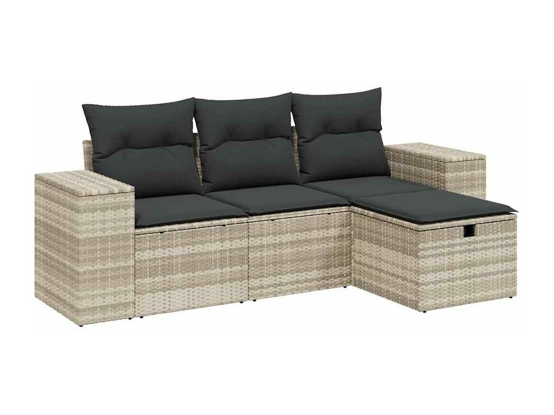 Salon de jardin 4 pièces avec coussins gris clair résine tressée