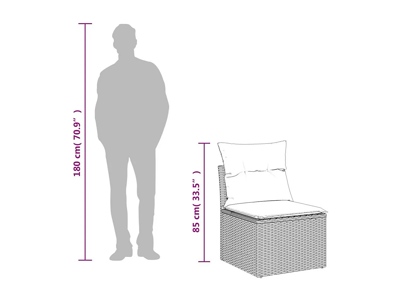 Salon de jardin 2 pièces avec coussins gris résine tressée acacia