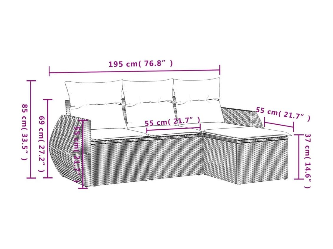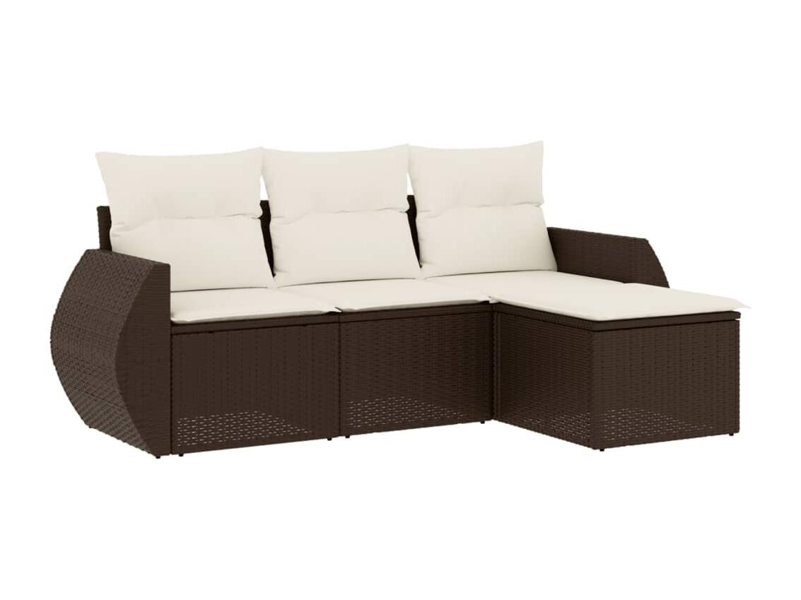 Salon de jardin 4 pièces avec coussins marron résine tressée