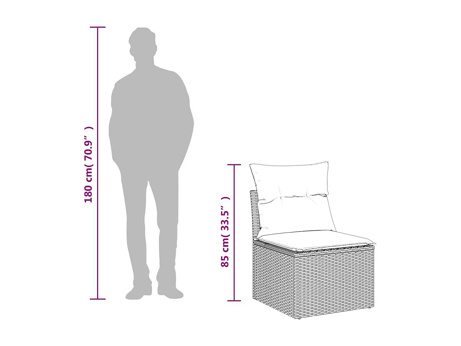 Salon de jardin 2 pièces avec coussins noir résine tressée acacia