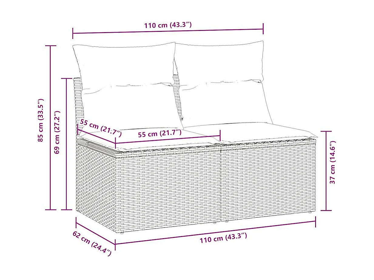 Salon de jardin 2 pièces avec coussins noir résine tressée acacia