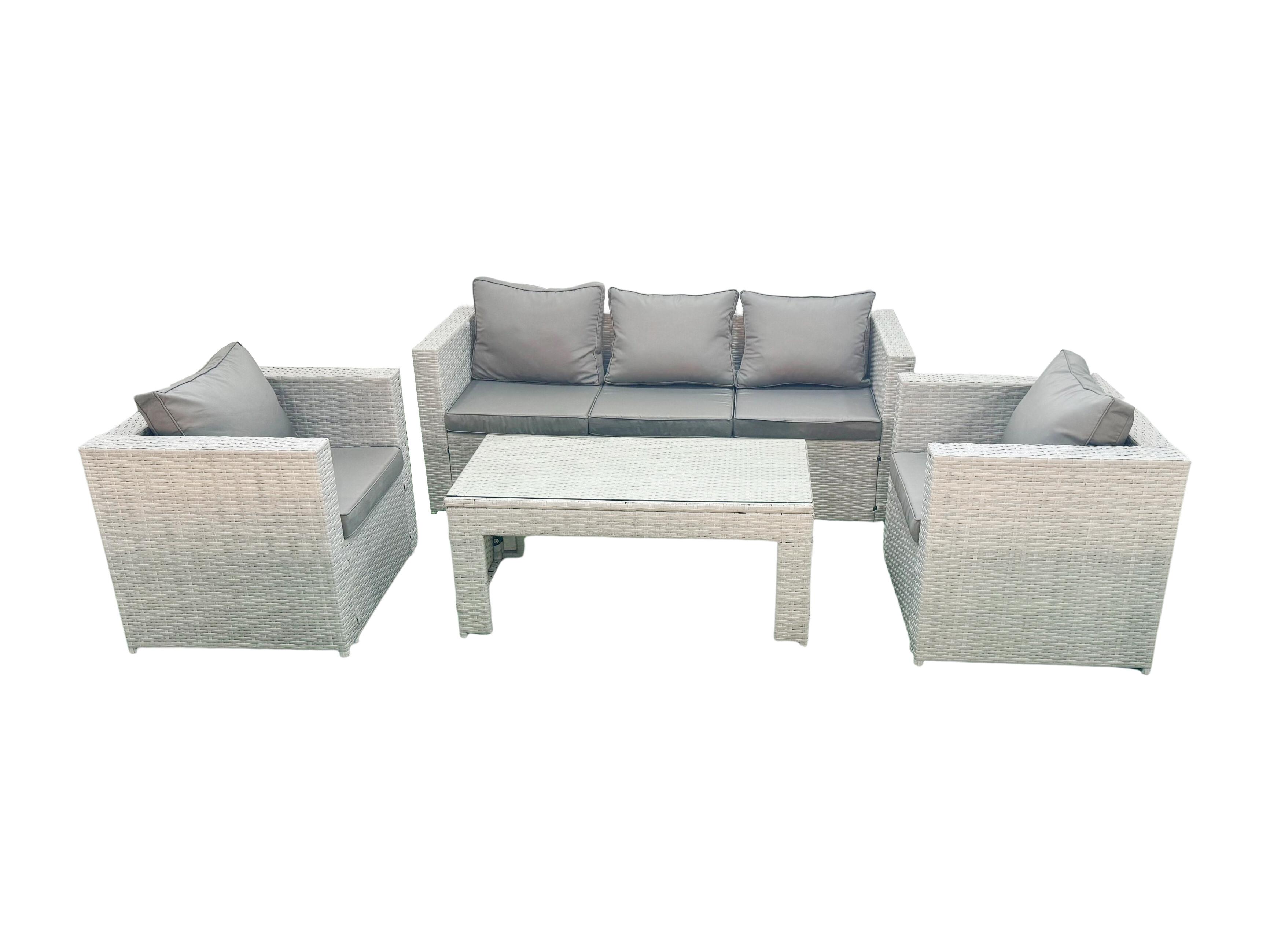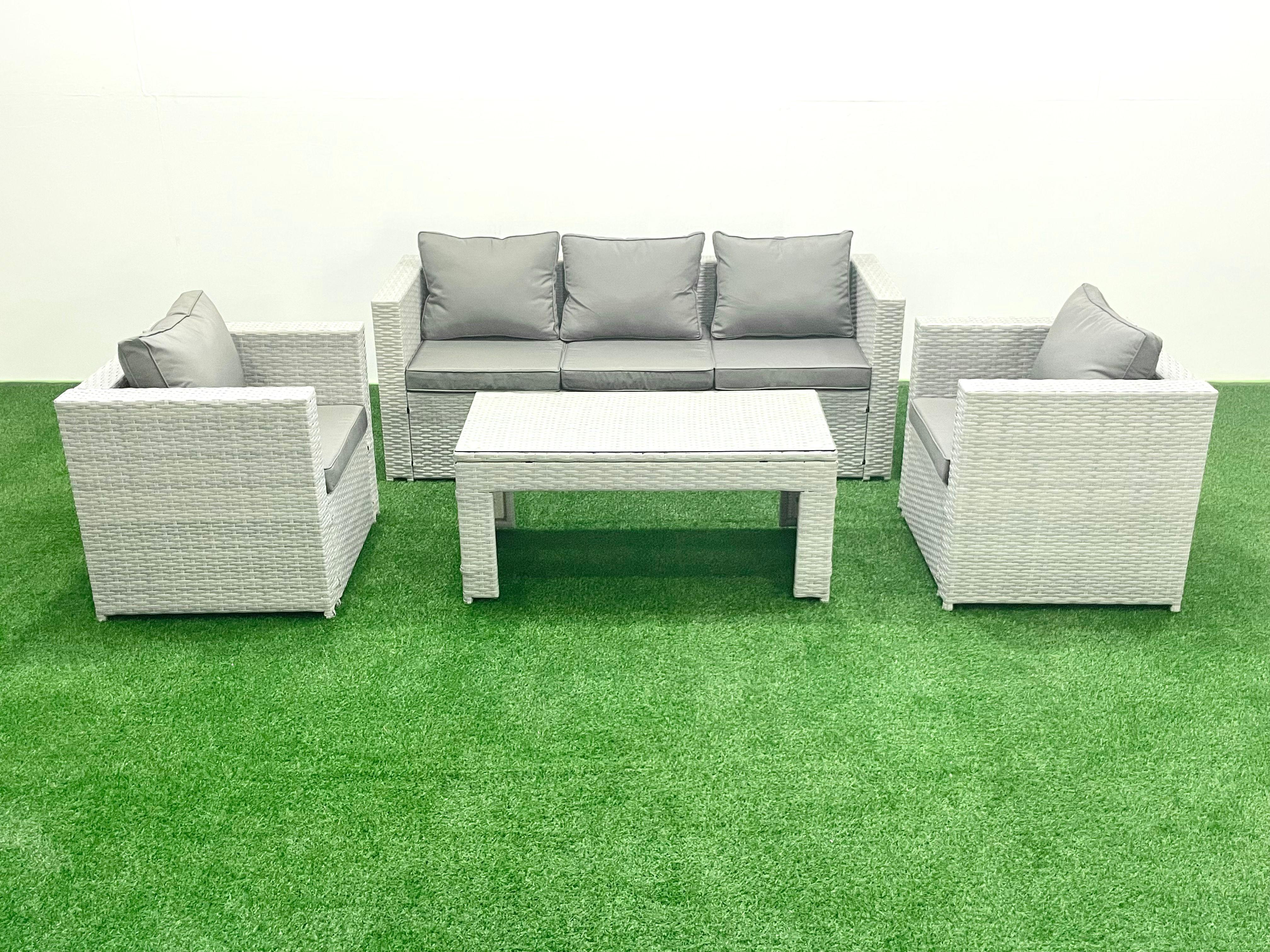 Salon de jardin 4 Pièces Canapé de jardin Table basse oblongue avec 2 Chaises Gris clair mixte